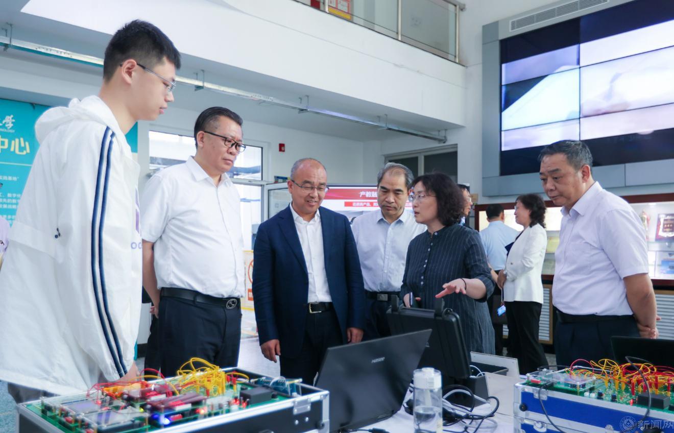 随后,于英杰书记一行来到“工程训练国家级教学示范中心”,听取学校关于深化本科教育教学改革的情况汇报,参观了智能制造实验室,与现场实习学生进行深入交流,观看学生科技创新作品,对世界杯在推进产教融合和数字化转型方面取得的成绩给予肯定。