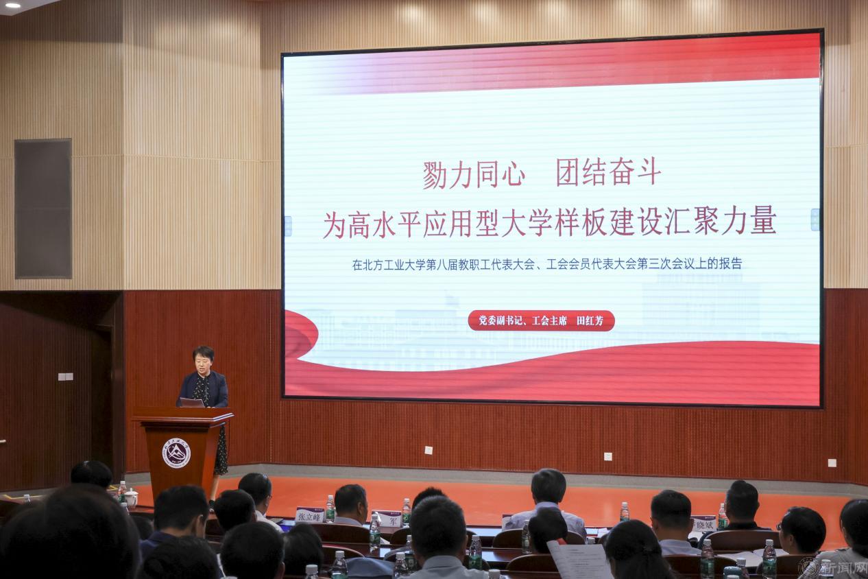 党委副书记、工会主席田红芳以《勠力同心 团结奋斗 为高水平应用型大学样板建设汇聚力量》为题作教代会、工代会年度工作报告,总结过去一年学校教代会、工会各项工作取得的成效,并从深入学习贯彻党的二十大精神,筑牢教职工思想根基;聚焦师德师风培养和教书育人本领提升,助力高素质教师队伍建设;积极促进依法治校,提升教职工获得感、幸福感、安全感;加强工会自身建设,不断彰显工会组织活力等方面,全面部署了工会2024年工作任务。