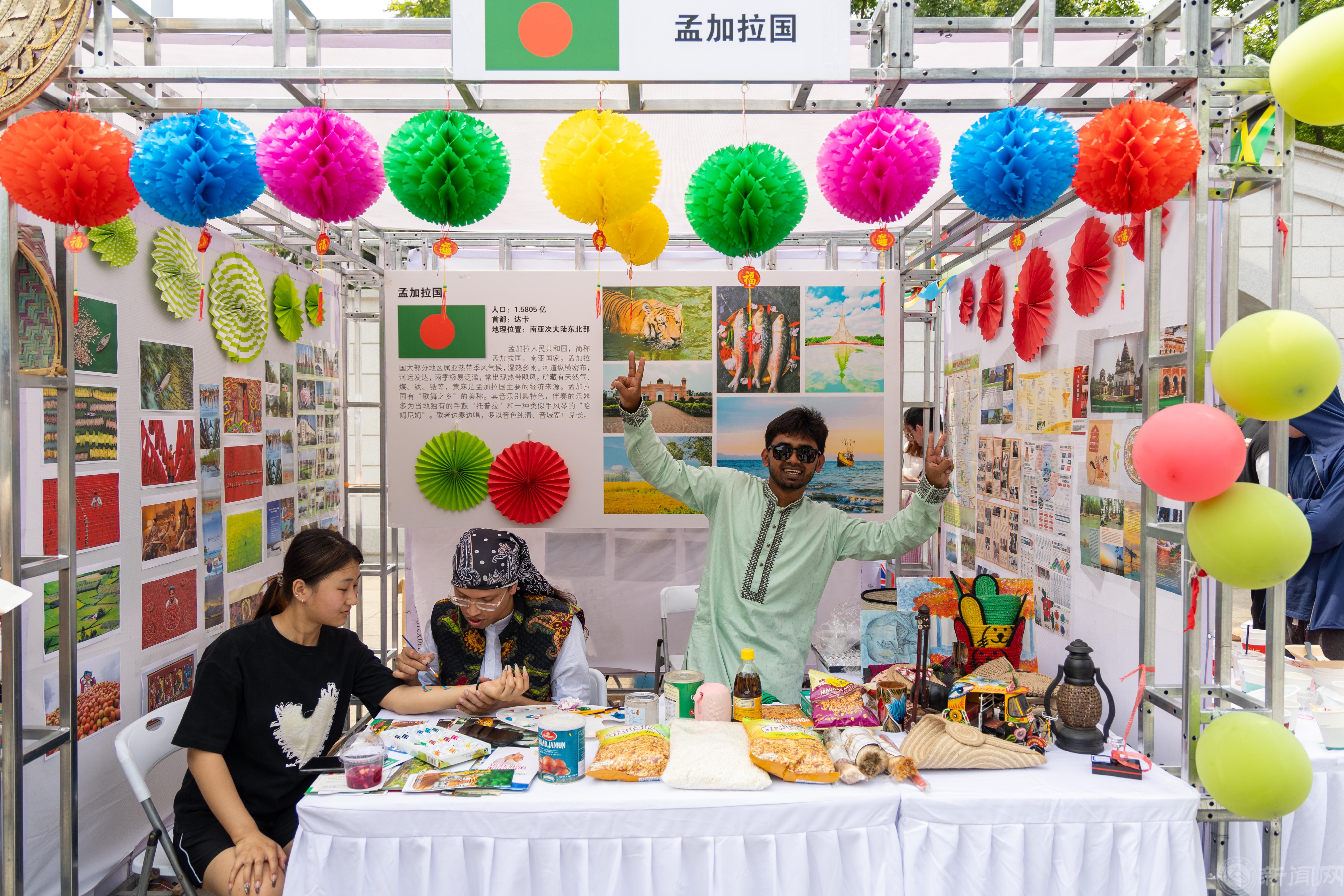 留学生们身着本国传统服饰,通过精心准备的传统文化海报、工艺品、照片、明信片、手工挂件、互动体验游戏等,向中国师生热情展示自己国家的特色文化,并免费提供亲手制作的传统美食。中国传统文化展位首次加入了书法体验、非遗手工、汉服体验等元素,让留学生们倍感新鲜。持一本全世界环游的工大文化节专属护照,在各国展台与留学生互动集印章,更为此次国际文化节增添许多趣味性。