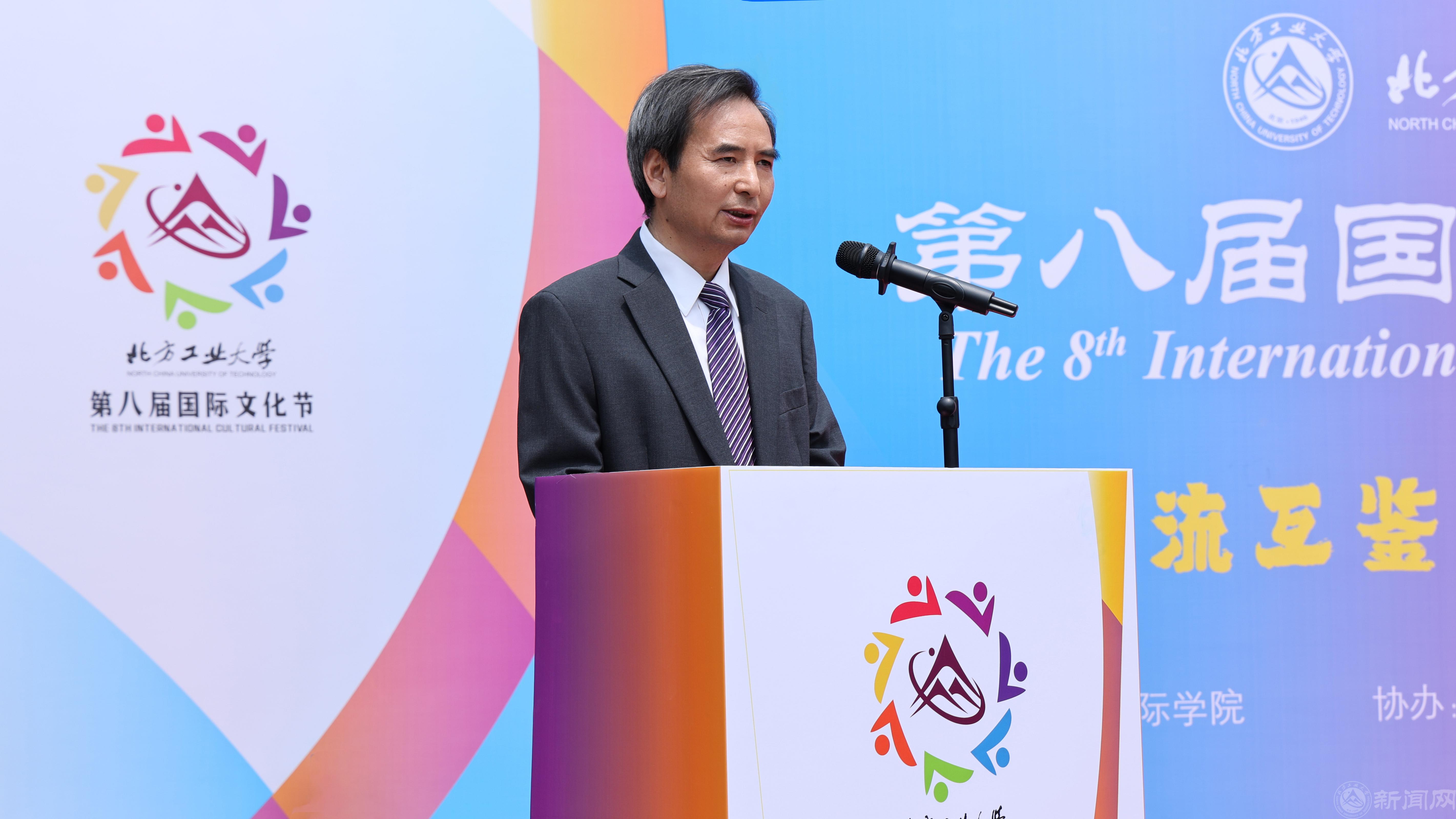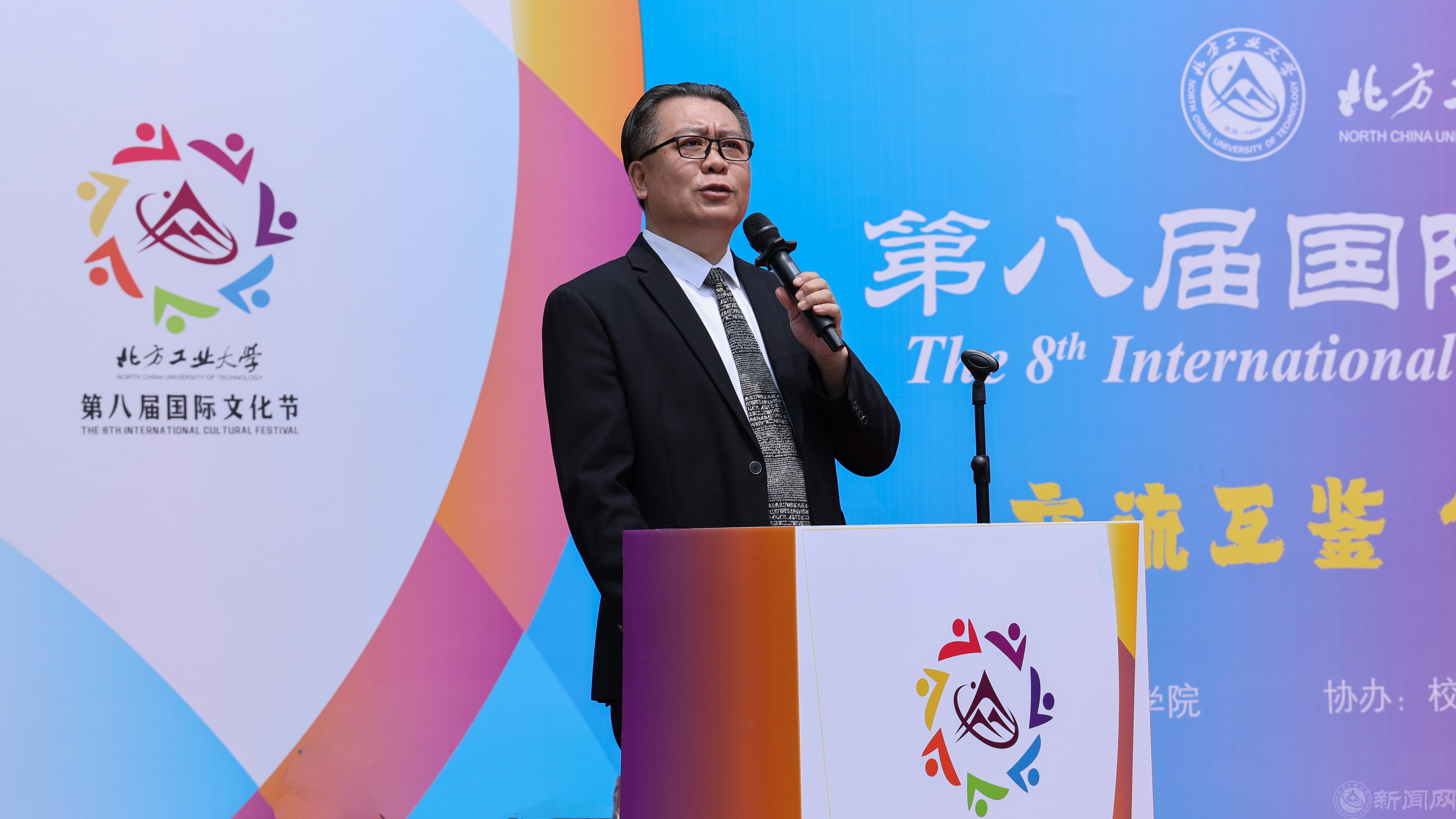 11点30分,第八届国际文化节在中国古典舞“醉春风”中拉开帷幕,张立峰致开幕辞。他对所有到访嘉宾给予本次国际文化节的大力支持表示感谢,指出每个国家都有自己独特的文化,学校始终致力于为中外师生营造开放包容的校园氛围,搭建互学互鉴的交流平台,加深大家对各国文化的理解,促进各国文明交融共享,这也是今天举办国际文化节的意义所在。结合“传承 创新”的主题,张立峰鼓励各国留学生要在继承本国优秀文化的基础上发展创新,校长还非常幽默地称呼学校师生都是可爱的人,提议北方工大师生以后以North Cuter in Beijing来称呼自己。