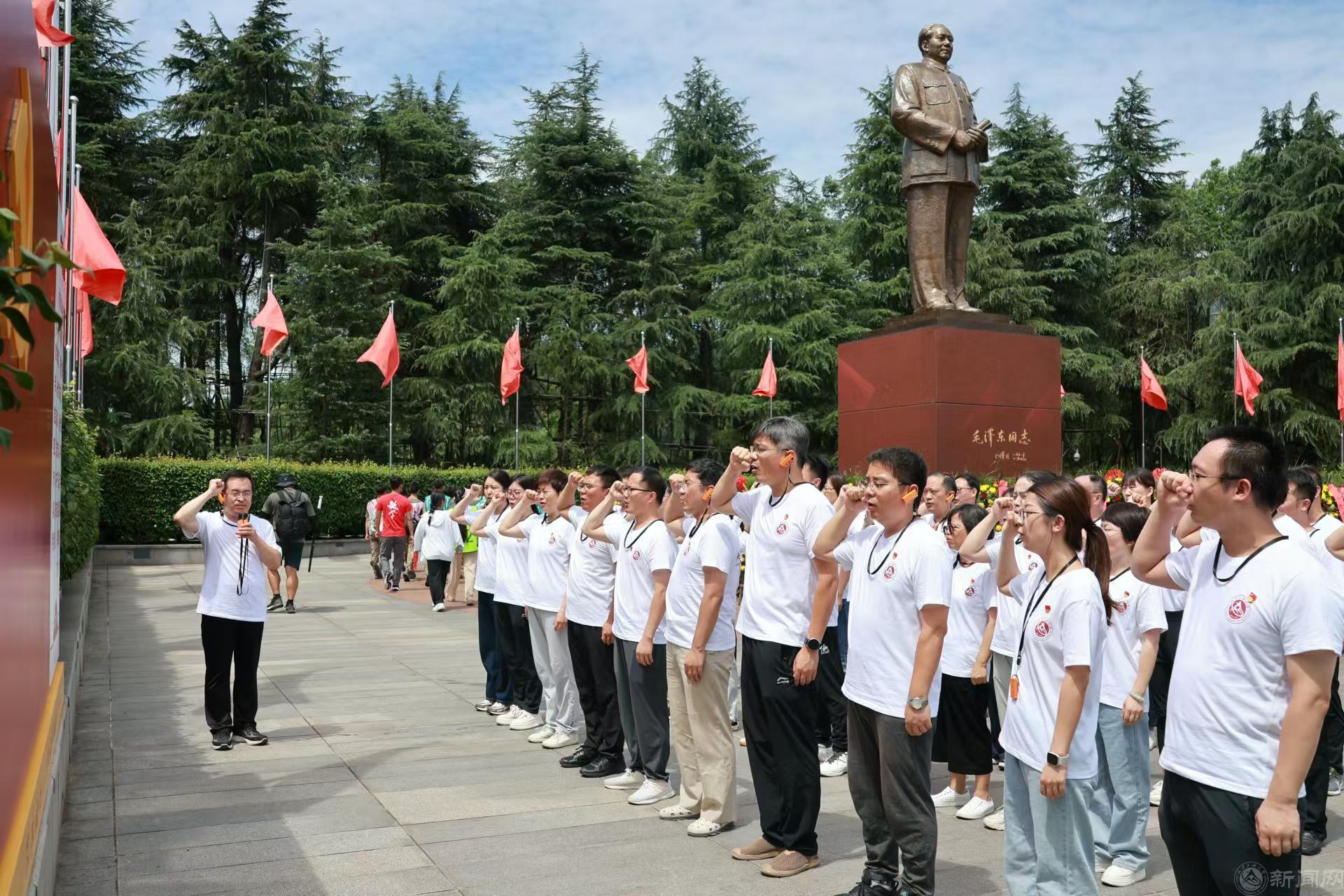抚今追昔,饮水思源。韶山,作为毛泽东同志的诞生之地、革命实践萌发之地,承载着中国共产党人的初心与使命。在庄严肃穆的韶山冲毛泽东广场,全体党员整齐列队,静默肃立,向毛泽东铜像敬献花篮,三鞠躬致敬,并绕行一周深情瞻仰,表达对毛主席的崇高敬意和无限追思。瞻仰完毕后,全体党员在鲜红的党旗前重温入党誓词,铿锵有力的誓言回荡在广场上空,激励着每一位党员坚定理想信仰,践行党的宗旨。