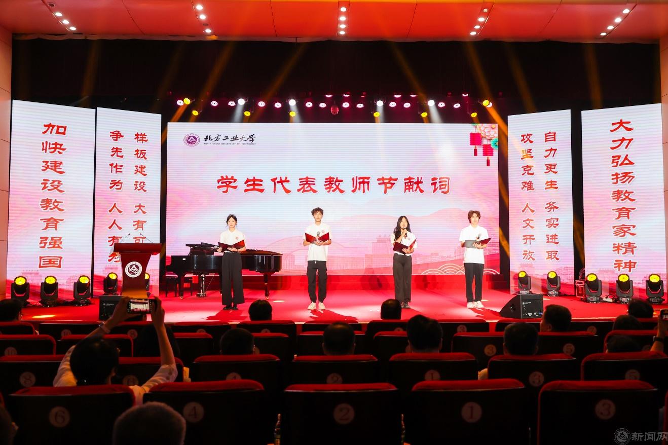 刘军指出,尊师重教是学校的光荣传统,建校78年以来,以仇春霖、沈久珩、齐东旭等为代表的一大批优秀教师,赓续“兴工报国”传统,持续推动学校进步发展。进入新时代,全校教师贯彻学校第九次党代会精神,锚定高水平应用型大学样板建设目标争先作为,弘扬教育家精神,涌现出以王彦平、张晓光等为代表的新时代“工大榜样”,形成了教育家精神在北方工大的生动实践,为全校教师树立了典范。