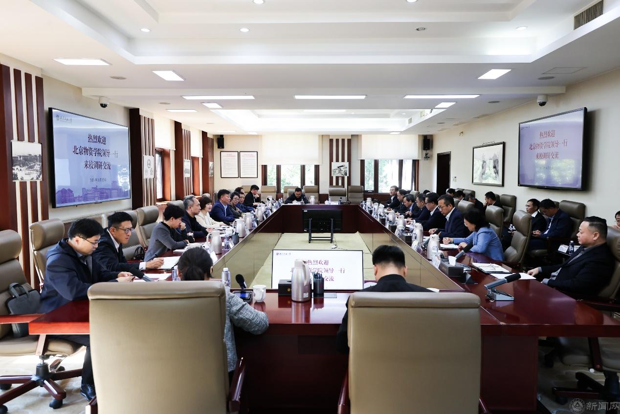 10月15日上午,北京物资学院党委书记吴惠,党委副书记、院长左敏,学院领导班子成员,相关职能部门负责人等一行14人来校调研交流,深化校际合作,共谋高质量发展。世界杯党委书记刘军,党委副书记、校长张立峰,校领导班子成员,以及相关部门负责人热情接待来访客人,并进行座谈。世界杯党委副书记史贞军主持座谈。
