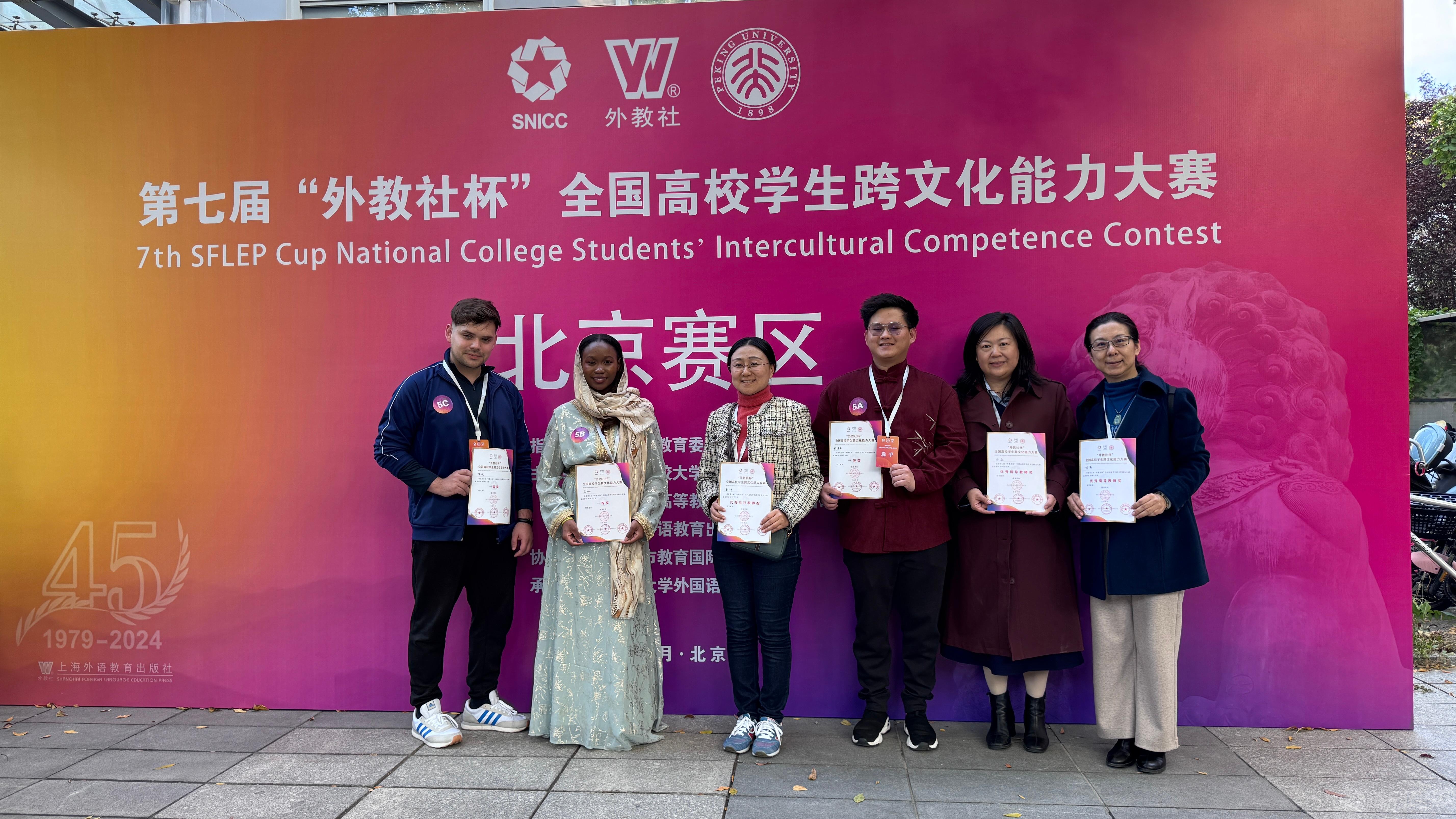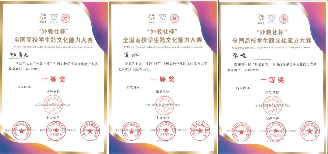由北京高校大学英语教育发展中心、北京市高等教育学会大学英语研究会和上海外语教育出版社主办的第七届“外教社”杯北京高校学生跨文化能力大赛于10月26至27日在北京大学举行,世界杯留学生陈勇先(印度尼西亚)、莫琳(莱索托)和荣峻(德国)组成的团队荣获一等奖。国际学院刘妍、徐美、李燕三位教师获评优秀指导教师奖。