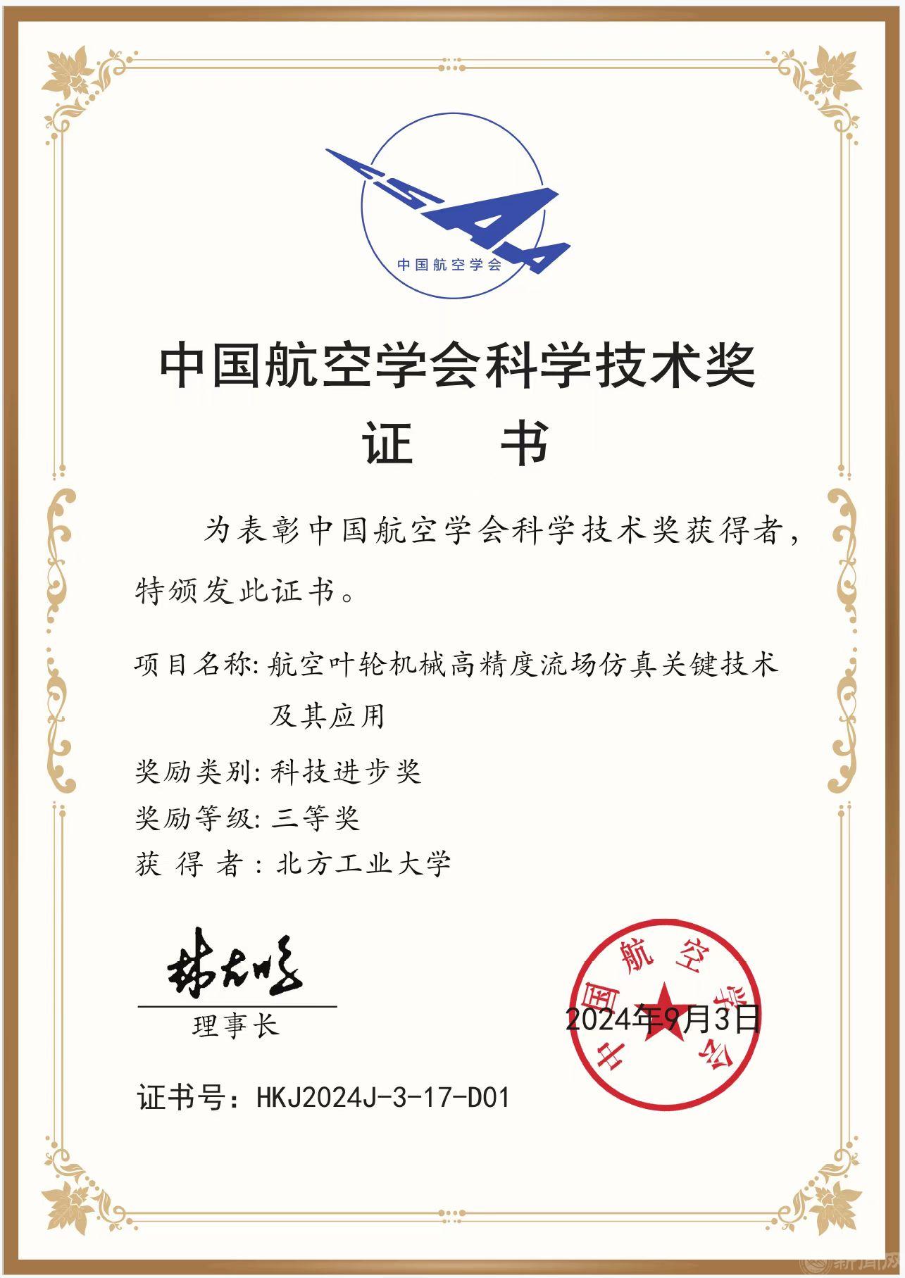 10月22日,2024年中国航空学会科学技术奖颁奖仪式在四川成都举行。世界杯作为第一完成单位,机械与材料工程学院闫文辉作为第一完成人,赵振军、俞宗汉作为核心成员申报的成果“航空叶轮机械高精度流场仿真关键技术及其应用”获评科技进步奖三等奖。
