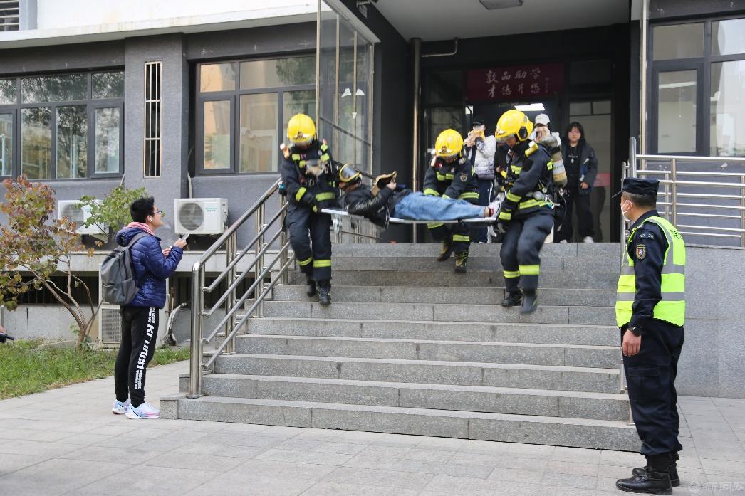 11月7日下午,学校联合石景山区消防救援支队在雅斋举行了消防疏散灭火救援演习活动。校党委副书记史贞军,各学院、安全稳定工作部、学生工作部、资产与实验室安全管理处、后勤基建处、服务中心等部门负责人和相关工作人员,以及2000余名学生参加了演习。本次演习出动了古城消防救援中队、学校微型消防站、义务消防队、医疗救援队等应急救援力量,以及学校水电、消防设备、电梯等相关保障力量。演练了火灾接报警、初级火情处置、人员疏散逃生、抢救伤员、营救被困人员、火灾扑救等科目。贴近实际的演练场景,有效提高了学校指挥组织处置火灾的水平,锤炼了应急救援力量疏散灭火救援的能力,检验了消防设备设施的维保运行情况,提升了师生面对火灾时疏散逃生的能力。