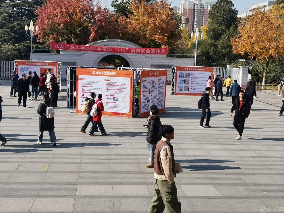11月4日起,学校在毓秀广场摆放了火灾基本知识、宿舍和实验室如何防范火灾、电动自行车使用注意事项等消防安全常识展板10余块,并利用毓秀广场大屏幕、公寓的宣传屏幕和食堂的电视播放消防安全的宣传视频,普及消防安全知识,积极为消防安全宣传月营造良好的氛围。