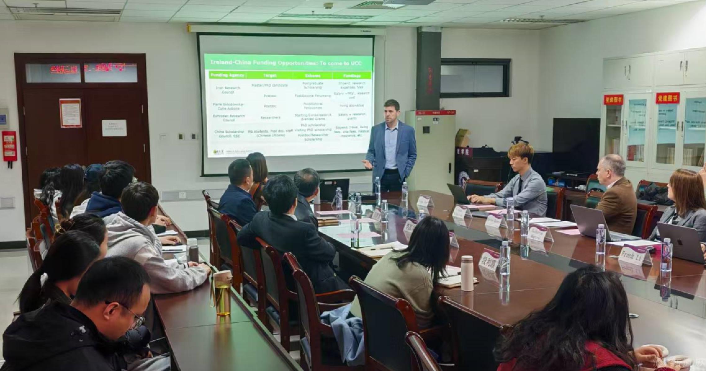 Kevin Hayes院长介绍了该校数学学院的学科特色和交叉学科建设情况,并分享了科克大学在中外合作办学方面所取得的经验和成果。他表达了希望两校能在机器学习、大数据、人工智能、信息技术等领域开展更为深入的师生交流与科研合作的愿望,以互惠双方师生的共同发展。