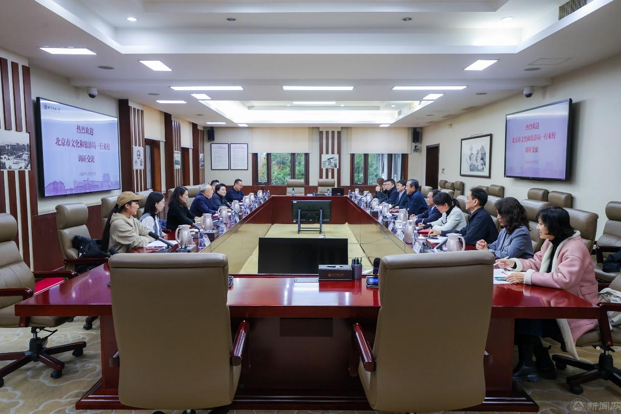 11月15日下午,北京市文化和旅游局领导、二级巡视员马文一行来校调研,围绕落实市委宣传部、市委教育工委“‘京’彩文化青春绽放”行动等情况进行交流指导。党委副书记史贞军出席,学校相关部门负责人及文旅局艺术处负责人参加。