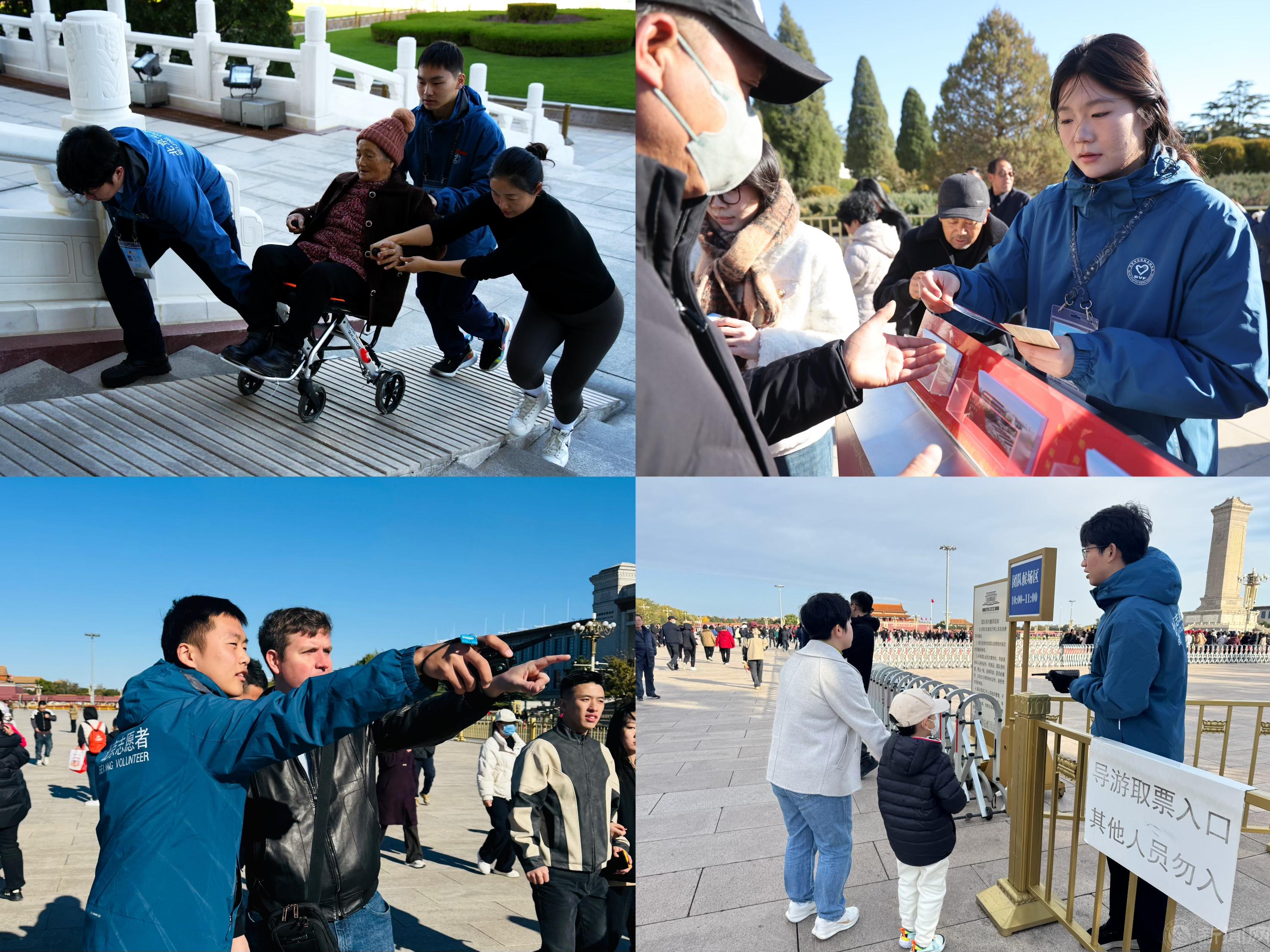 初冬时节的北京寒意渐浓,志愿者们克服早起早出、天气寒冷等困难,始终以饱满的热情投入到志愿服务工作。他们主要负责绿色通道队伍疏导、现场个人预约指导、扶老助残、蓝立方便民服务等岗位,以青春行动诠释“为主席站岗,为人民服务”的热忱与担当。在志愿服务之余,志愿者们还开展板报绘画、团课学习,重温党的历史,赓续红色血脉;进行志愿服务应急培训,提高处置各类突发事件的应急能力;集体观看天安门广场升旗仪式,见证五星红旗冉冉升起的庄严时刻;参观国家博物馆,感受中华文明的厚重与博大……通过形式多样的主题党日、团日活动,激发志愿者工作热情,更好地投入到志愿服务当中。