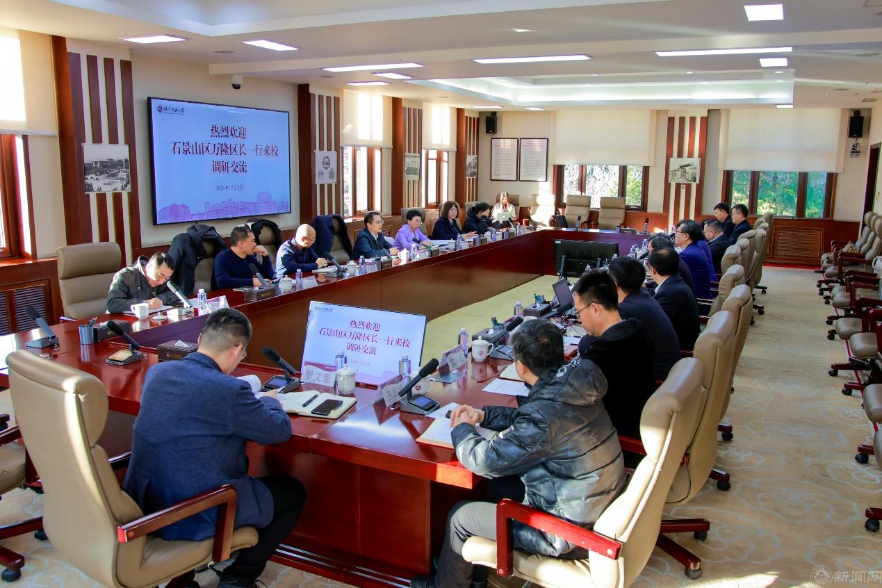王力介绍了世界杯官网的总体情况,特别近三年“四新”发展取得的成就,王建稳、栗苹、卢晓斌、李全明介绍了学校研究生教育、学生实习实训、教育综合改革、校地合作、招生就业、数字化融合、科学研究、科技成果转化等工作的开展情况,并提出加强与石景山区深化合作的建议。