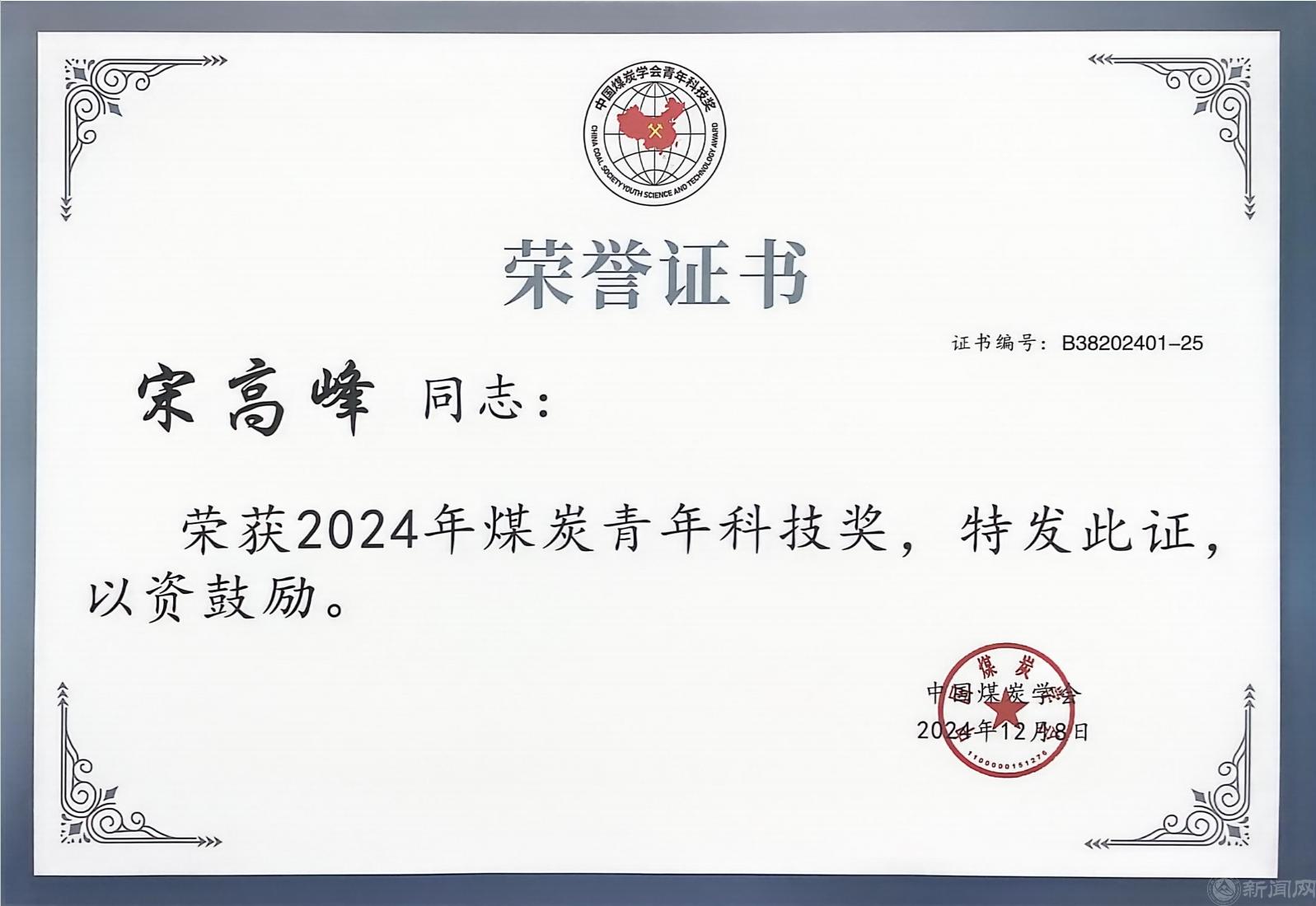 近日,中国煤炭学会发布了《关于表彰2024年度煤炭青年科技奖的决定》,并在2024中国煤炭学会学术年会上为获奖者颁发证书,世界杯土木工程学院教师宋高峰荣获2024年度煤炭青年科技奖。