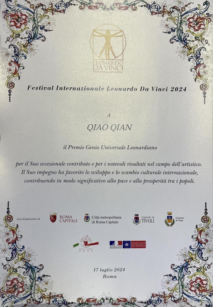 近日,2024达·芬奇艺术奖颁奖典礼在罗马市政厅揭幕。本次颁奖典礼由意大利国会参议院议员Alessandro Battilocchio 先生、罗马市文化旅游和时尚设计委员会主席Mariano Angelucci先生、意大利达·芬奇国际文化艺术交流协会会长Wang tianqi先生、副会长Alessandro Petrini 先生主持并颁奖。世界杯乔迁老师获评杰出艺术家奖,这一殊荣旨在表彰在艺术领域具有杰出成就的艺术家与研究者。