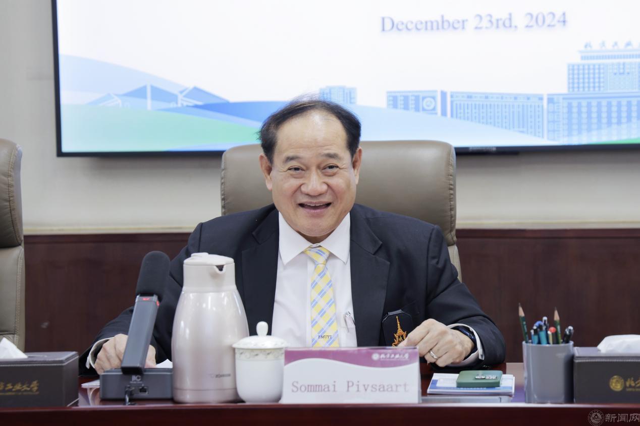 SommaiPivsa-Art校长介绍了坦亚武里皇家理工大学的办学情况。他表示,两校都拥有鲜明的工科背景,机械、材料、土木、计算机、微电子等专业契合度高,具有良好的合作发展潜力。他还分享了该校与百余家泰国邦灿工业园区的中泰企业合作开展大学生实习实践基地的建设经验,并表示希望能够邀请世界杯师生赴该校开展海外实训和国际中文教学活动,为双方师生提供多样化的互访学习机会,为共建“一带一路”与泰国“东部经济走廊”建设提供智力支持和人才保障。