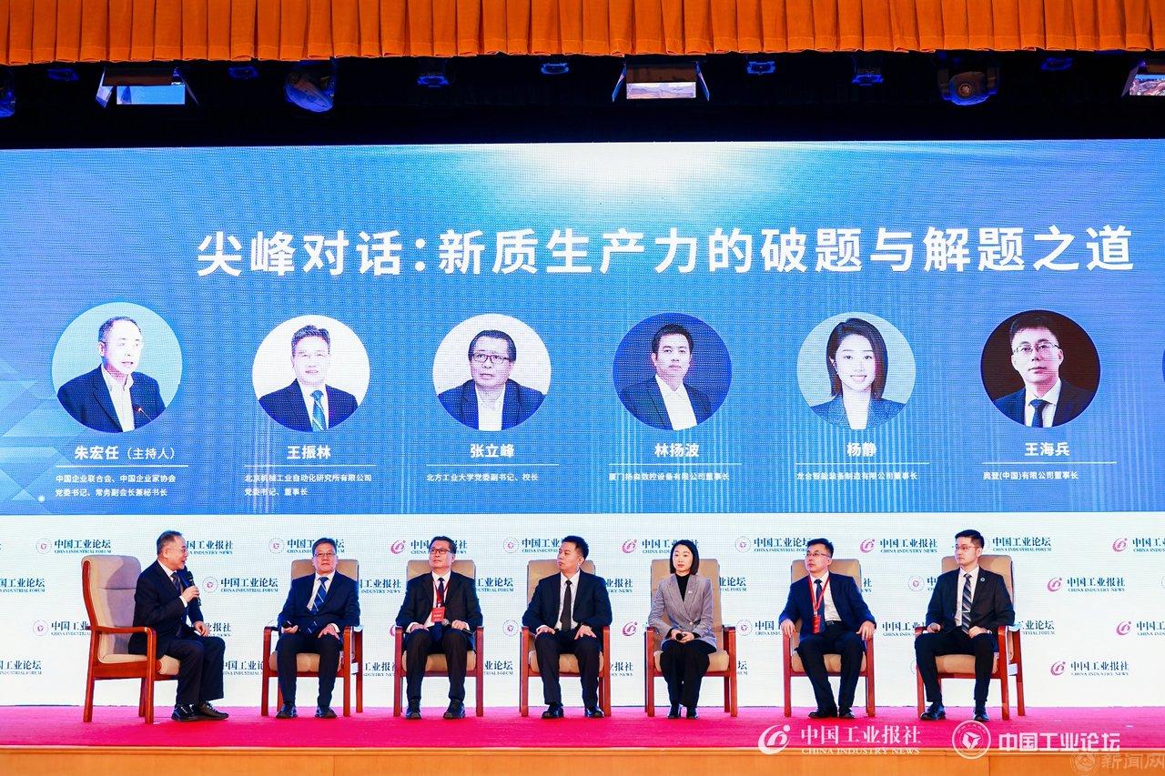 在尖峰对话环节,中国企业联合会党委书记、常务副会长兼理事长,工业和信息化部原总工程师朱宏任作为圆桌主持人,与会嘉宾围绕新质生产力的破题与解题之道展开交流和探讨。