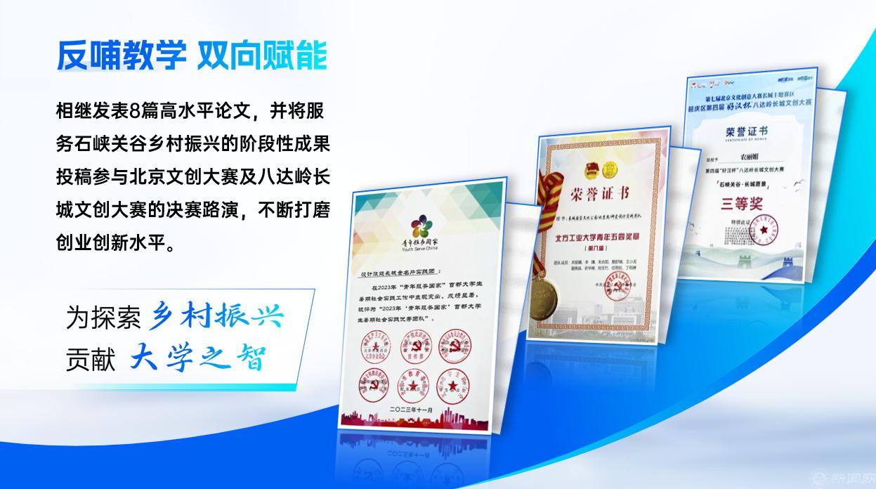 依托共建活动开展教学和科研,将课堂学习转移到长城脚下,坚持问题导向、服务为重,把专业学习和社会需要紧密联系起来,反哺教学,双向赋能。发表了8篇高水平论文。相关师生与主题活动也相继获得了2024年首都高校师生服务乡村振兴一等奖、世界杯官网“青年五四奖章”、首都“挑战杯”竞赛二等奖、八达岭长城文创大赛三等奖等。相关工作、活动被人民日报、学习强国等媒体的关注报道。
