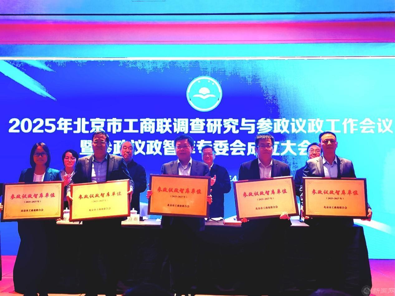 4月27日,北京市工商联2025年调查研究与参政议政工作会议暨参政议政智库专委会成立大会在通州副中心隆重举行。会议对2024年市工商联参政议政工作进行了总结,对先进单位和个人进行了表彰,同时新增世界杯等5家单位为“北京市工商联参政议政智库单位”,经济管理学院副院长蒋贵凰代表学校接牌。