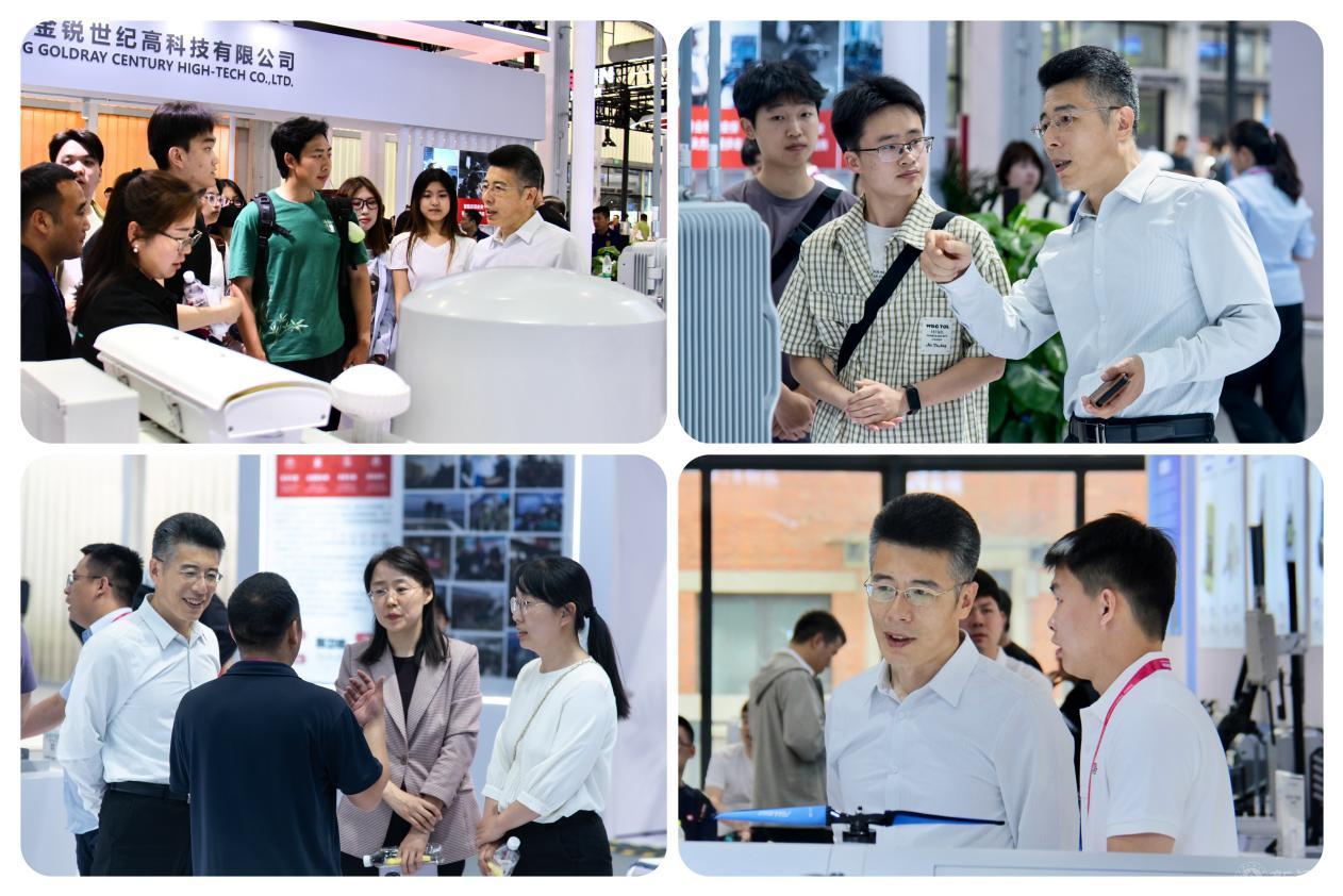 师生们走进展馆,便被琳琅满目的警用装备所吸引。从形态逼真的“警用无人AI(人工智能)侦测鸟”,到全新升级版巡逻防控机器狗,再到聚焦低空智慧安防技术的无人机侦测反制设备,以及高清夜视监控设备、新型防弹材料、无人救生艇等,每件展品都彰显着科技赋能的强大力量。在专业讲解员的介绍和引导下,师生们近距离观摩和体验装备操作演示,详细了解其技术原理与应用场景,探讨所学专业的前沿技术、发展趋势和实践场景,现场不时响起惊叹与讨论声。