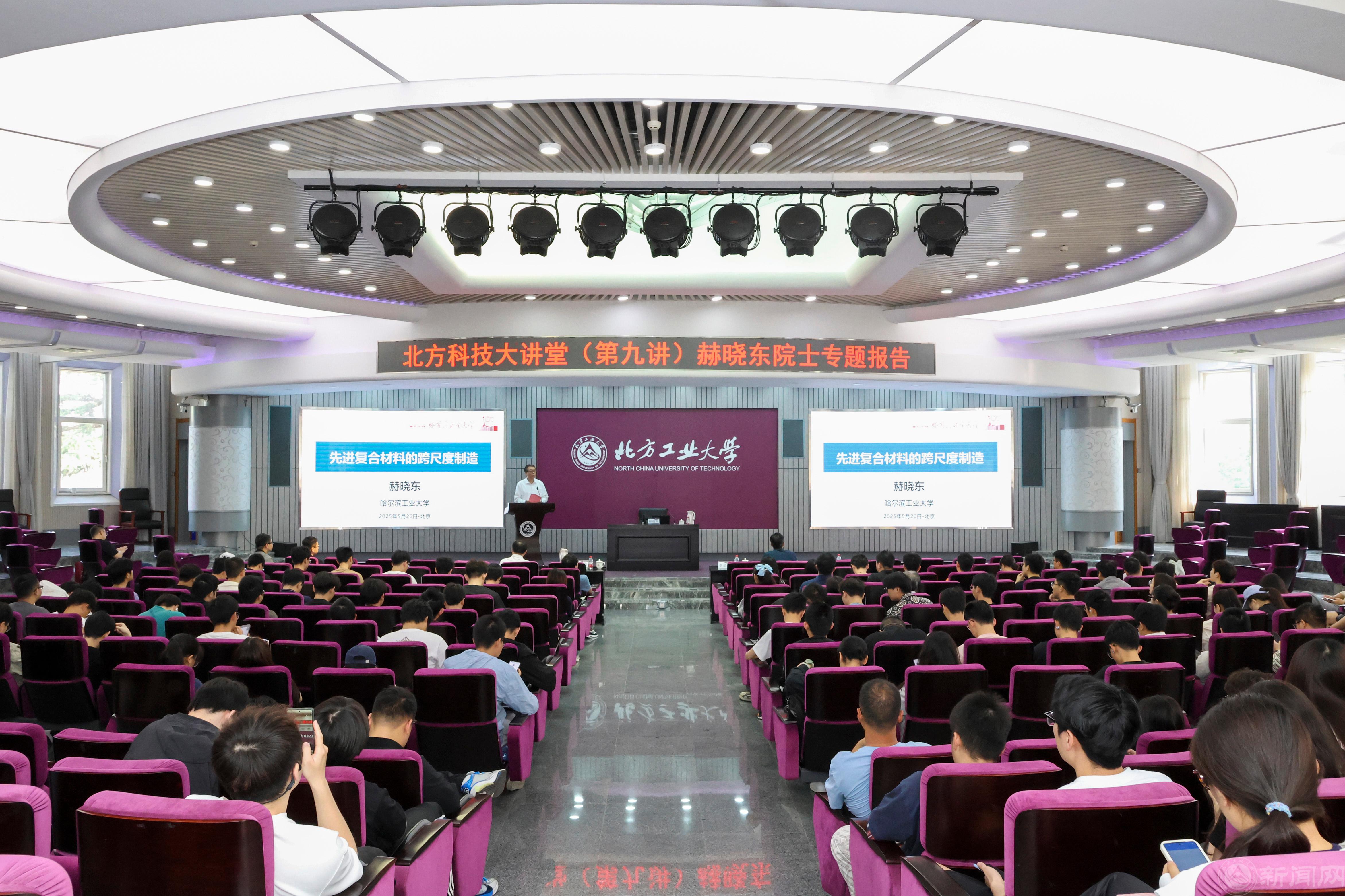 5月26日,北方科技大讲堂第9讲在广学楼报告厅隆重举行。中国工程院院士、国家级重点实验室主任、特种环境复合材料结构与工程力学专家赫晓东院士应邀作专题报告。赫院士以《先进复合材料的跨尺度制造》为题,为学校各学院200余名师生带来了一场高水平、前沿性的学术盛宴。校党委副书记、校长张立峰主持报告会。