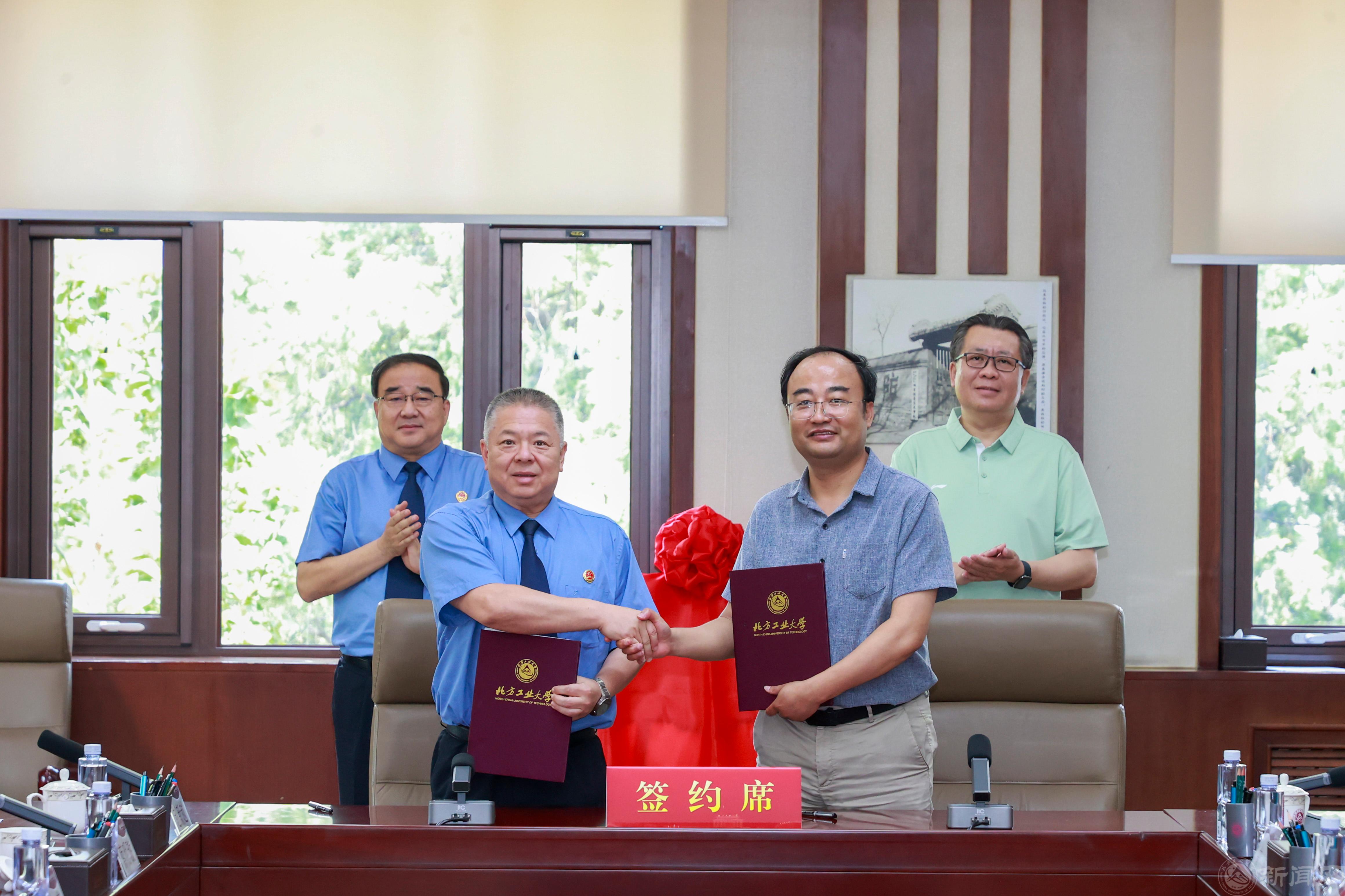 党组副书记、副检察长陈速与党委常委、副校长王力共同签署检学共建工作备忘录。