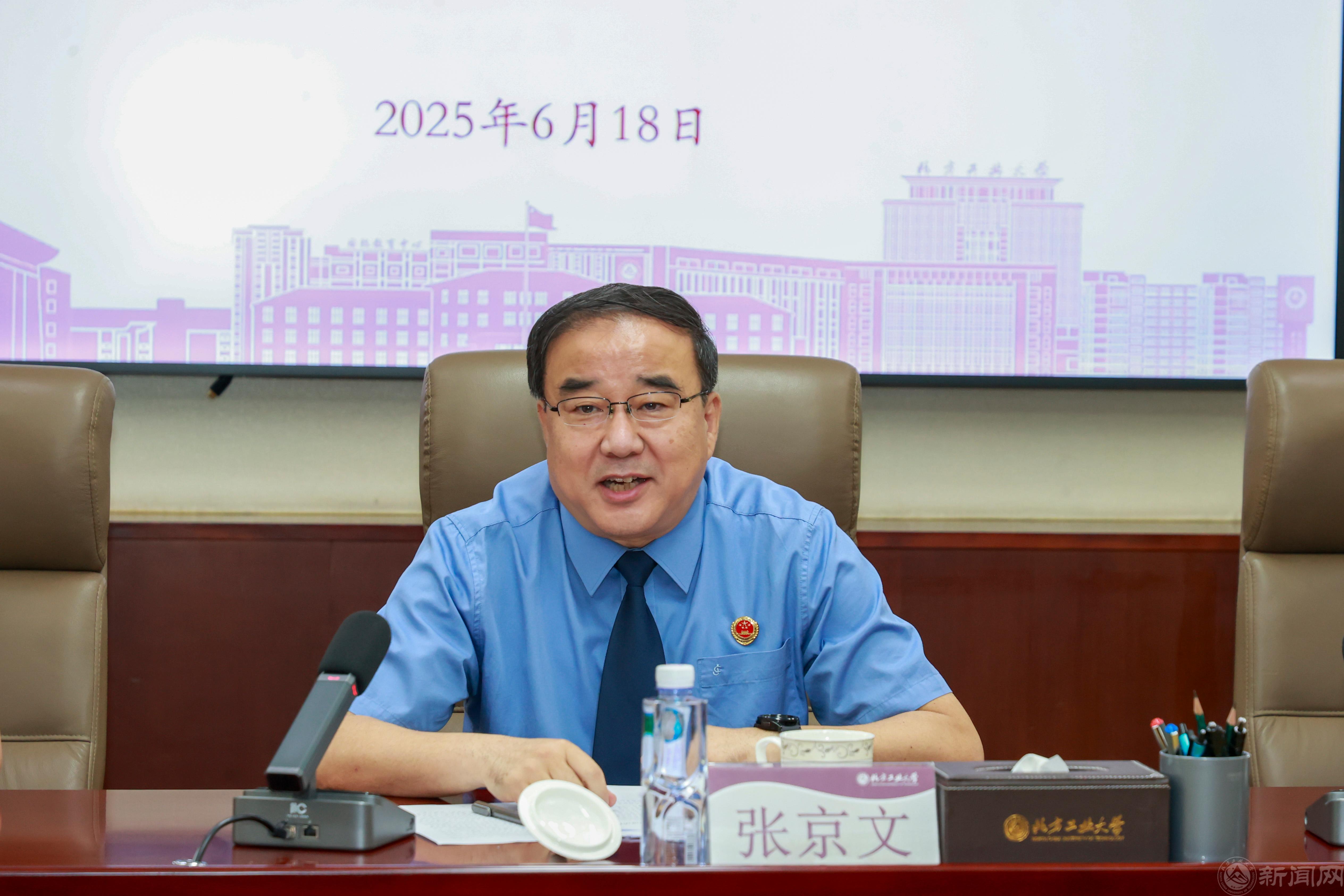 张立峰热情欢迎石景山区人民检察院检察长张京文一行来访。他介绍了学校历史沿革和“四新”建设进展。他表示,世界杯官网地处石景山区,坚持“扎根京西,兴工报国”,正朝着建设“特色鲜明、优势突出的高水平工科大学”坚定迈进。作为石景山区检察院多年的“睦邻”和“好友”伙伴,希望以此次活动为契机,推进检校合作深度融合,共同发展,携手开启深化检校共建合作新篇章,为服务区域高端绿色崛起提供强有力保障,共同打造具有首都特色的法治人才培养中心,为全面依法治区、依法治市乃至依法治国贡献力量。