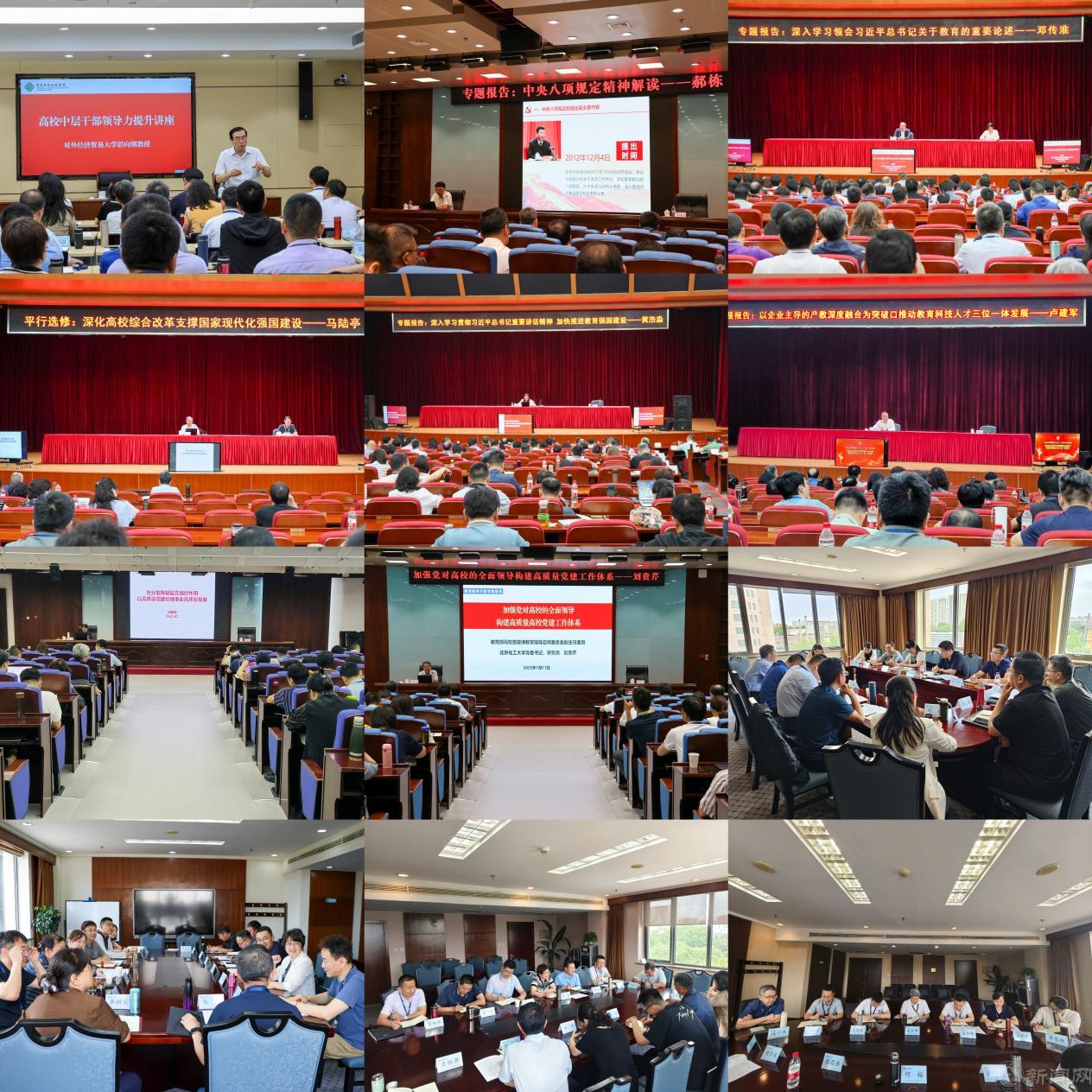 本次培训汇聚了强大的师资阵容,课程内容丰富,交流形式多样。设置了专题报告、案例教学、现场教学、交流研讨、素质拓展等教学内容。培训期间,全体学员听取了中央八项规定精神解读、中国共产党的初心使命与奋斗历程、深入学习领会习近平总书记关于教育的重要论述、深入学习贯彻全国教育大会精神加快推进落实《教育强国建设规划纲要》、高校党建形势与任务、加强党对高校的全面领导构建高质量党建工作体系、深化高校综合改革支撑国家现代化强国建设、人工智能时代的教育数字化转型、推进教育科技人才深入融合、提高中层干部领导力等10场专题报告;分组前往北京化工大学、北京师范大学、北京航空航天大学、中央美术学院等四所高校,围绕全国党建工作“标杆院系”创建、教育部高校“双带头人”教师党支部书记工作室创建、全国党建工作“样板支部”创建、高质量党建引领学院事业高质量发展等进行现场教学;学员分组与中国海洋大学、华中农业大学参训干部就履职能力提升进行交流研讨;全体学员分四组,围绕学校党建工作中面临的问题和应对策略、对学校“十五五”规划的意见和建议展开讨论。