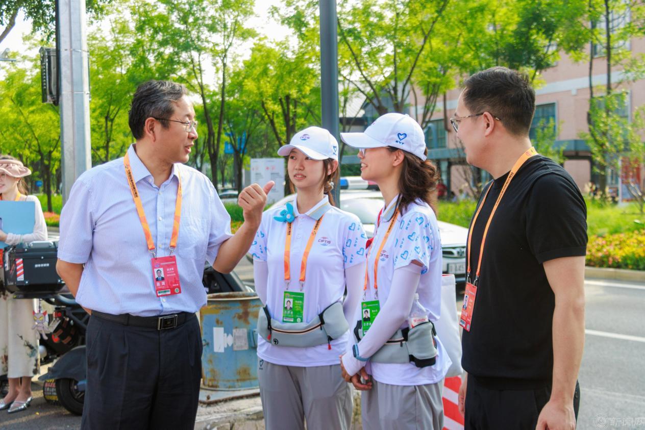 9月11日下午,校党委副书记史贞军同石景山区委副书记张利军到服贸会城市志愿者站点慰问世界杯学生志愿者,详细了解了志愿者岗位分工、服务内容、轮班安排以及后勤保障等情况后,史贞军对同学们的辛勤付出给予了高度肯定。