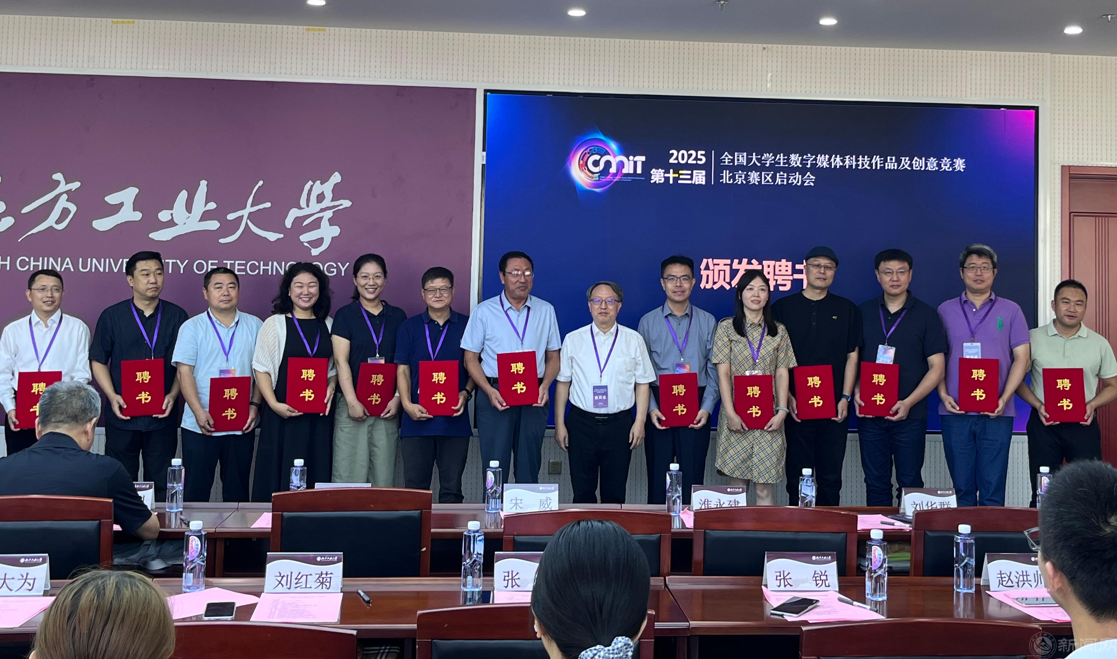全国大学生数字媒体科技作品及创意竞赛秘书长、北京印刷学院刘华群教授宣读了北京赛区专家委员会名单。黄心渊教授向北京赛区专家委员会主任委员、副主任委员、秘书长、副秘书长颁发聘书。北京赛区专家委员会主任委员、副校长陈家庆向专家委员会委员代表颁发聘书。
