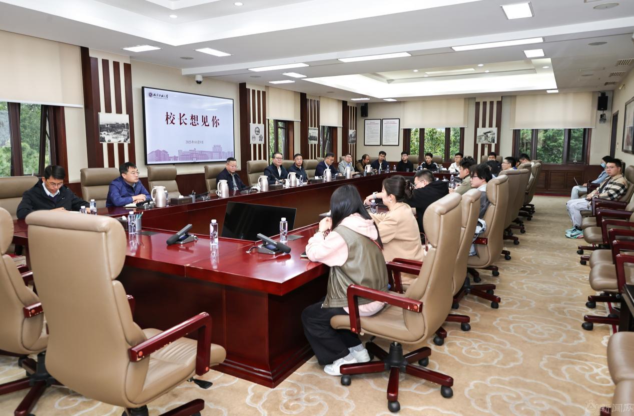 10月9日上午,“校长想见你”系列活动在敦品楼302会议室举行。党委副书记、校长张立峰与2024、2025级博士生代表亲切座谈,围绕学习、科研、生活等话题深入交流。副校长卢晓斌主持座谈会,研究生院、学工部、招生就业处、后勤基建处等部门负责人及电气与控制工程学院、机械与材料工程学院院长参加座谈。