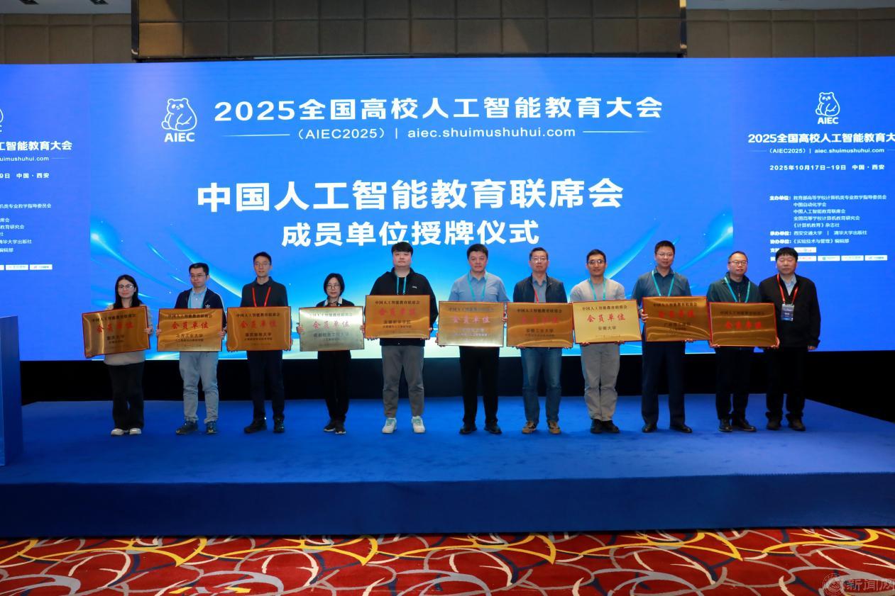 近日,人工智能与计算机学院在“2025年全国高校人工智能教育大会”上获颁“中国人工智能教育联席会”会员单位牌匾,并成为“中国高校人工智能本科专业课程建设联盟”成员单位,这将有助于学院依托高端平台资源,聚焦国家“人工智能+”行动的战略部署,提升学院在人工智能领域的教育教学水平、人才培养能力与学科影响力。
