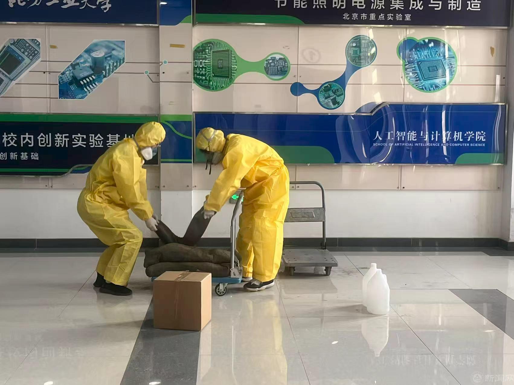 模拟场景设定为集成电路学院某实验室因操作不当导致危险废物泄漏,引发突发环境事件和火灾事故。接到报警后,学校立即启动应急预案,资产与实验室安全管理处、相关学院迅速响应,按照预案分工,展开应急处置工作。活动中,北京金隅红树林环保技术有限责任公司负责人详细讲解了有关实验室试剂泄露的紧急应对措施,强调了迅速识别泄漏源、有效隔离泄漏区域、以及采取适当个人防护措施的重要性。