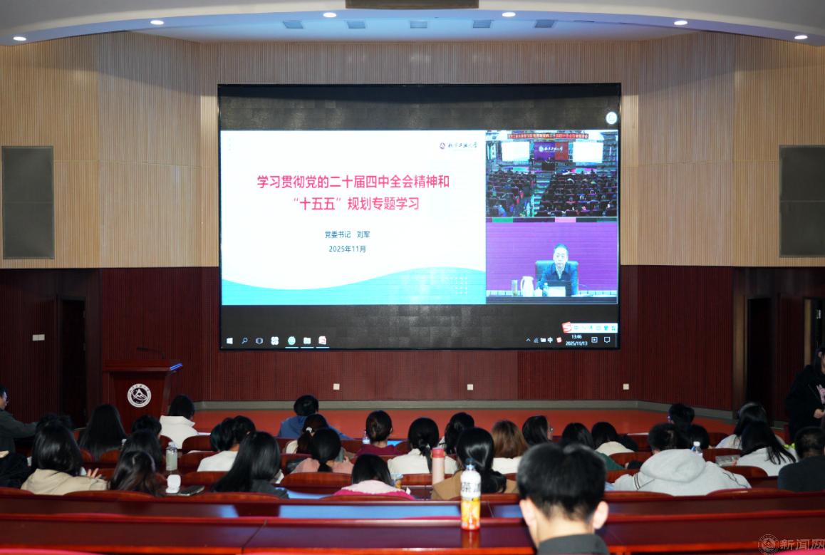 11月13日下午,学校在广学楼报告厅举行学习宣传贯彻党的二十届四中全会精神宣讲报告会,党委书记刘军作学习辅导报告。全体校领导、中层干部,各二级单位党委理论学习中心组成员、系主任、党支部书记,学生辅导员、思政课教师和学生代表等360余人现场参加,第三十六期党课培训班学员180余人在文化会堂分会场参加学习。党委副书记史贞军主持报告会。