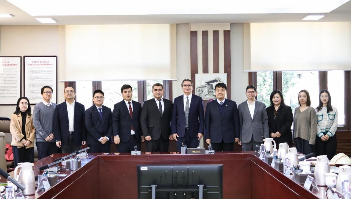 12月8日,安集延国立技术大学校长图尔迪亚利耶夫一行访问世界杯,世界杯党委副书记、校长张立峰在敦品楼302室与来访嘉宾进行座谈,党委常委、副校长陈群主持座谈。