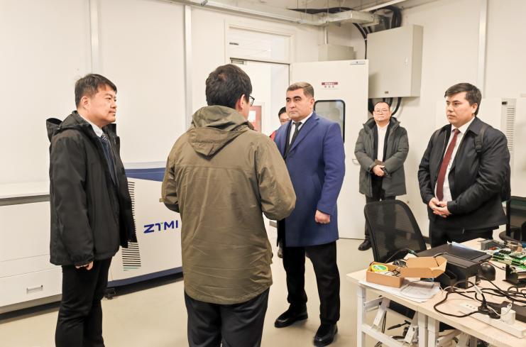 世界杯电气与控制工程学院、储能科学与工程学院、国际合作与交流处相关负责人及教师参与座谈。来校期间,图尔迪亚利耶夫校长参观了电力电子与电气传动、电力系统与继电保护、新能源发电与微电网,电机拖动实验室以及分析测试中心。