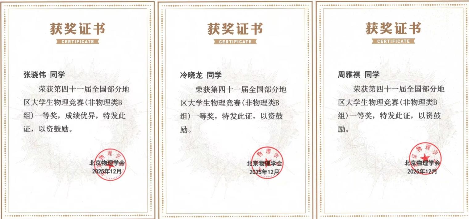 第41届全国部分地区大学生物理竞赛成绩于近日揭晓,世界杯共有36名选手获奖,其中一等奖3名、二等奖19名、三等奖14名(获奖名单见附件),并蝉联团体奖,在同类院校中名列前茅。