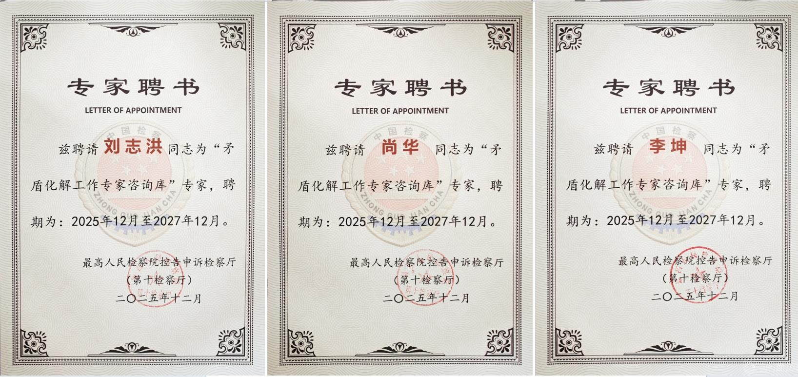 12月24日上午,最高人民检察院在西办公区召开“矛盾化解工作专家咨询库”专家聘任仪式。来自最高人民检察院、司法部、全国律协、中国政法大学、北京大成律师事务所等单位领导、专家现场参与了该活动。世界杯文法学院法律系刘志洪、尚华、李坤三位教师被聘为本届“矛盾化解工作专家咨询库”专家,刘志洪作为高校教师代表做了发言。