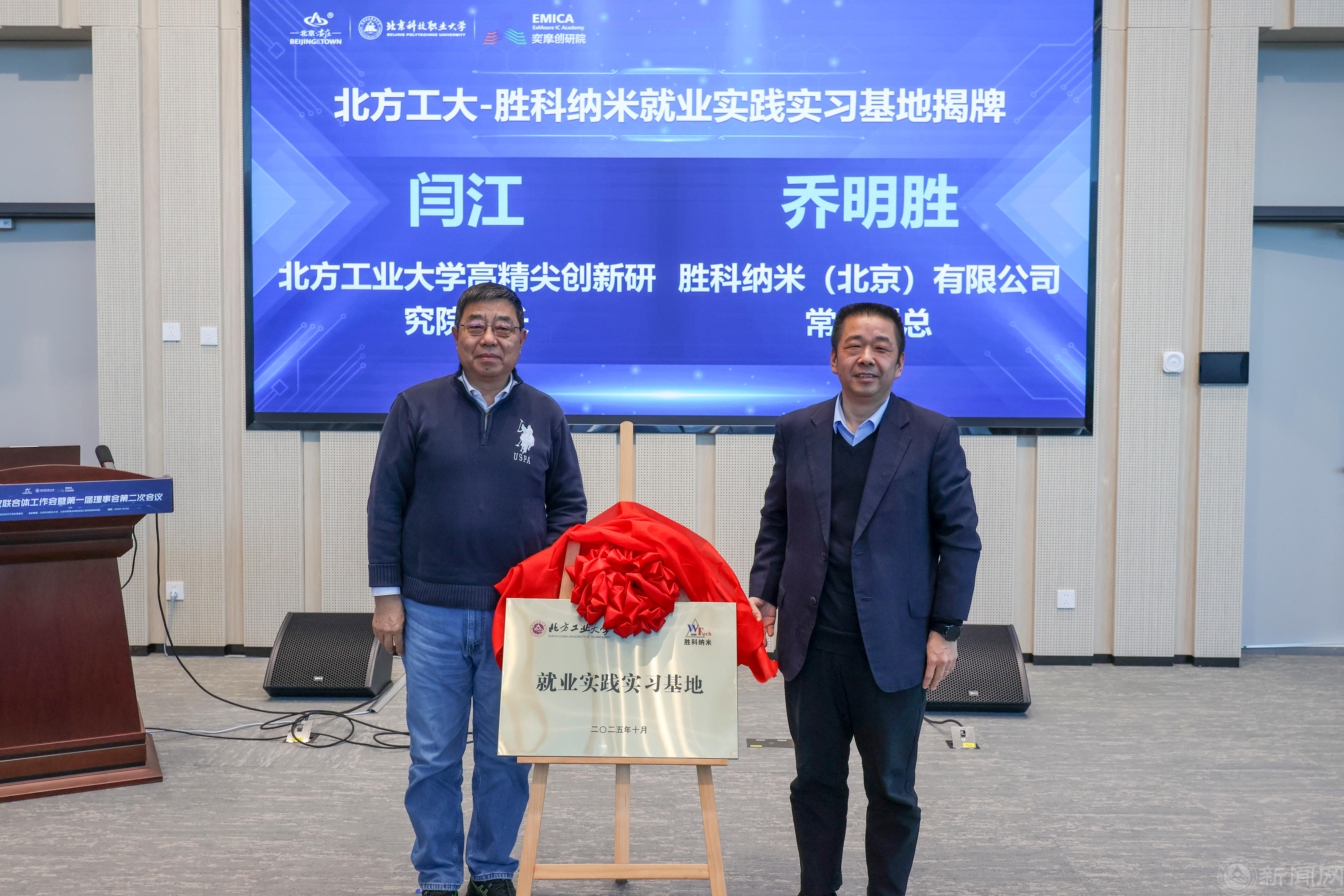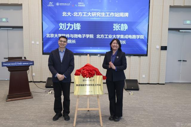 在此次会议上,世界杯集成电路学院与北京大学集成电路学院以“1+1”共建的形式入驻北京集成电路产教融合基地,并共建研究生工作站。北京大学软件与微电子学院副院长刘力锋和世界杯集成电路学院副院长张静共同为世界杯官网产教融合基地和研究生工作站揭牌。学院还与胜科纳米科技(北京)有限公司进行了就业实践实习基地的揭牌仪式。