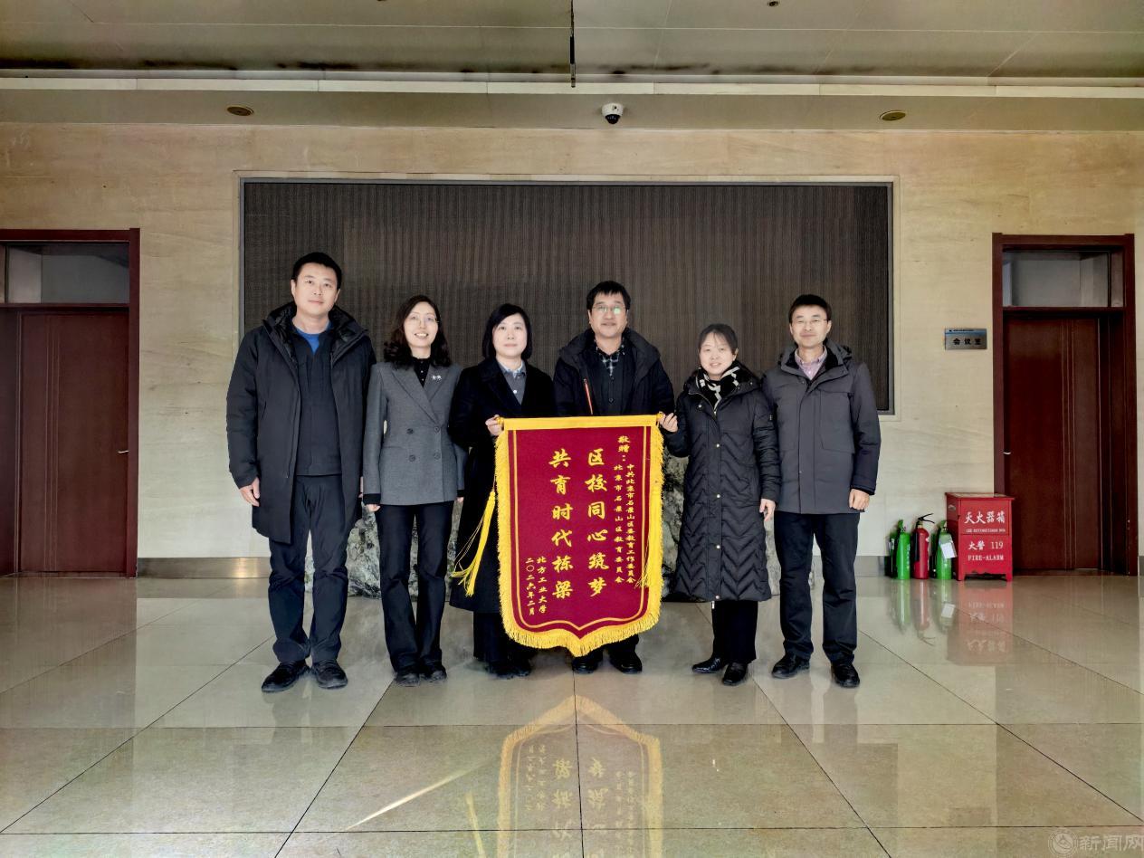 李全明代表学校送上锦旗。他表示,石景山区教委助力学校发展,共建区校合作平台,为学校教育教学与科研创新提质增效提供了有力支撑。