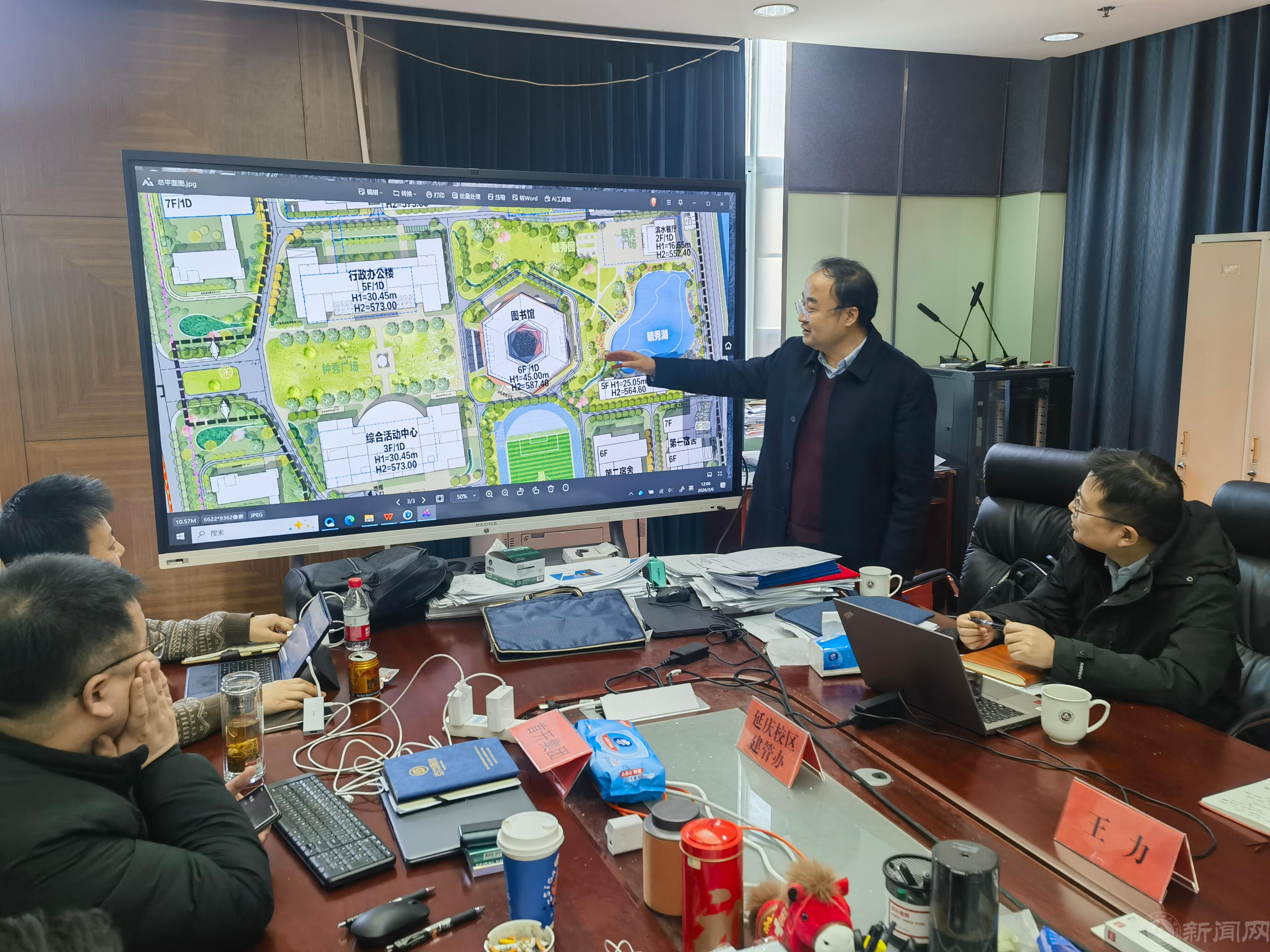 为了保证工程高效有序推进,寒假期间,新校区工作专班坚持“日汇报、周调度”工作机制,主动放弃休假,坚守岗位,加班加点推进各项规划手续办理和招投标工作,先后完成了项目概算批复、总包资格预审评审和临时用水、临时用电、第三方监测检测服务、材料检测服务、规划测量服务等评标工作。