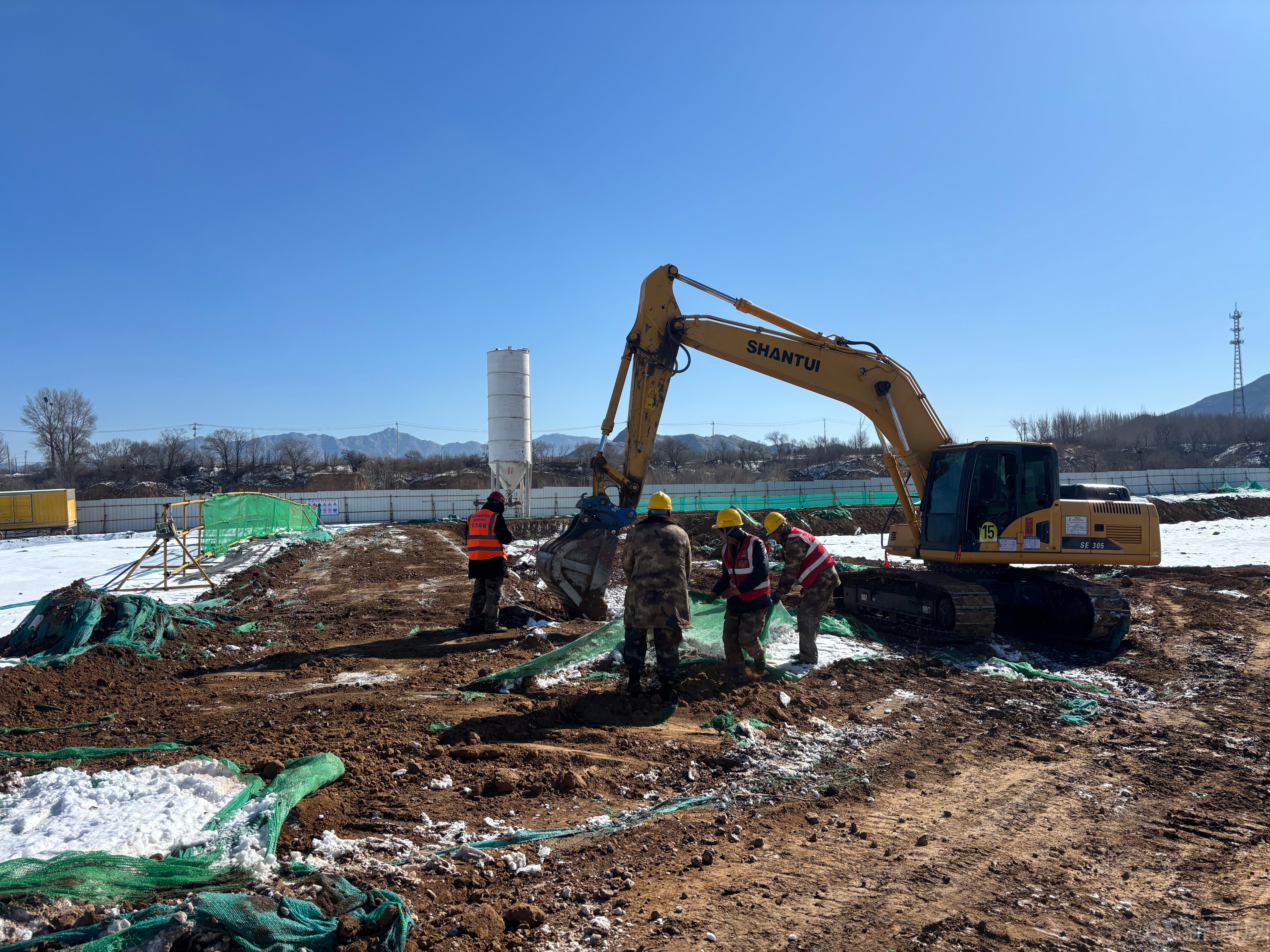 春节期间,延庆校区建管办工作人员坚守岗位,每日深入施工现场,与施工单位密切对接,协调解决建设中遇到的各种难题,春节期间不停工。各承建单位面对冬季施工带来的低温挑战,制定了详细周密的冬季施工方案,在春节期间如期高质量完成了项目场地平整、首步土开挖、施工围挡搭建和基坑支护准备等工作。