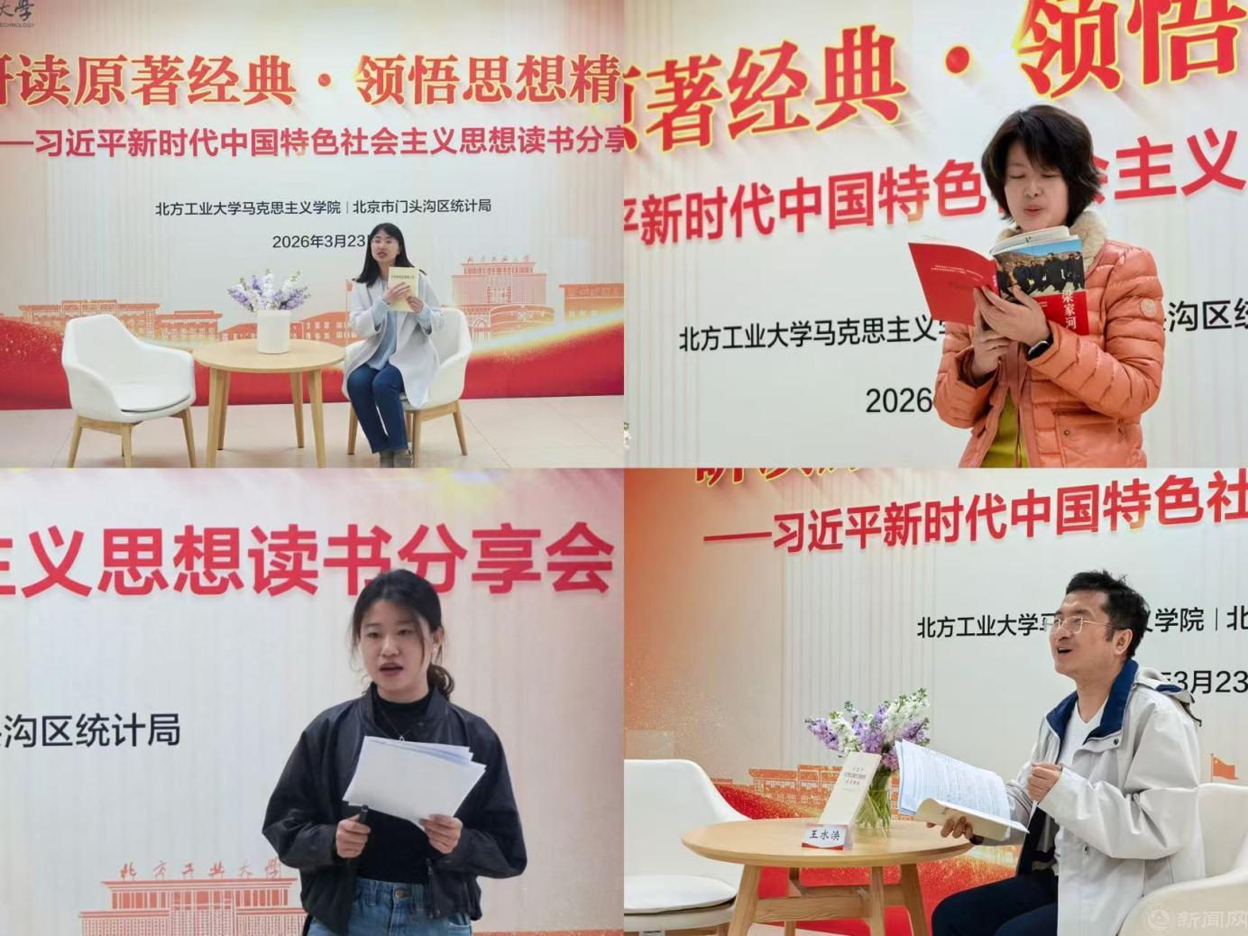 四位主讲人围绕经典原著、结合工作实践依次分享学习体会。习近平新时代中国特色社会主义思想概论教研室主任张晓晨副教授结合《论党的宣传思想工作》,分享了对党的宣传思想工作的深刻认识以及研读原著的基本方法;门头沟统计局干部王小红结合阅读纪实文学《梁家河》,通过基层统计员的典型事例,分享了在平凡岗位中坚守初心、服务人民的深刻感悟;马克思主义基本原理教研室温泉副教授围绕《习近平生态文明文选》(第一卷),系统阐释了习近平生态文明思想的核心理念,以及如何将其转化为教学科研“源头活水”的心得体会;中国近现代史纲要教研室王水涣老师结合当前正在全党开展的树立和践行正确政绩观学习教育,围绕《习近平关于树立和践行正确政绩观论述摘编》,以史为鉴,从马克思主义与中国传统文化相结合的视角,分享了涵养正确政绩观的思考。
