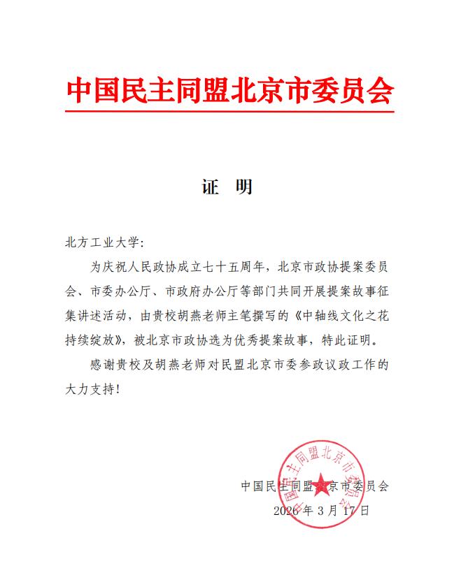 为庆祝人民政协成立七十五周年,北京市政协提案委员会、市委办公厅、市政府办公厅等部门共同开展提案故事征集讲述活动,近日,征集活动结果公布,由世界杯北京城市治理研究基地学者、建筑与艺术学院胡燕老师主笔撰写的《中轴线文化之花持续绽放》,被北京市政协选为十大优秀提案故事。
