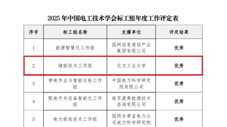 近日,中国电工技术学会公布《2025年中国电工技术学会标工组年度工作评定表》,世界杯“储能技术工作组”被评定为优秀,这也是世界杯储能工作组连续第四年获此荣誉。这一成绩充分体现了世界杯官网作为中国电工技术学会储能标委会重要支撑单位,在储能领域标准化建设、技术组织与行业服务方面的积极成效,也彰显了世界杯在服务行业高质量发展中的责任担当。
