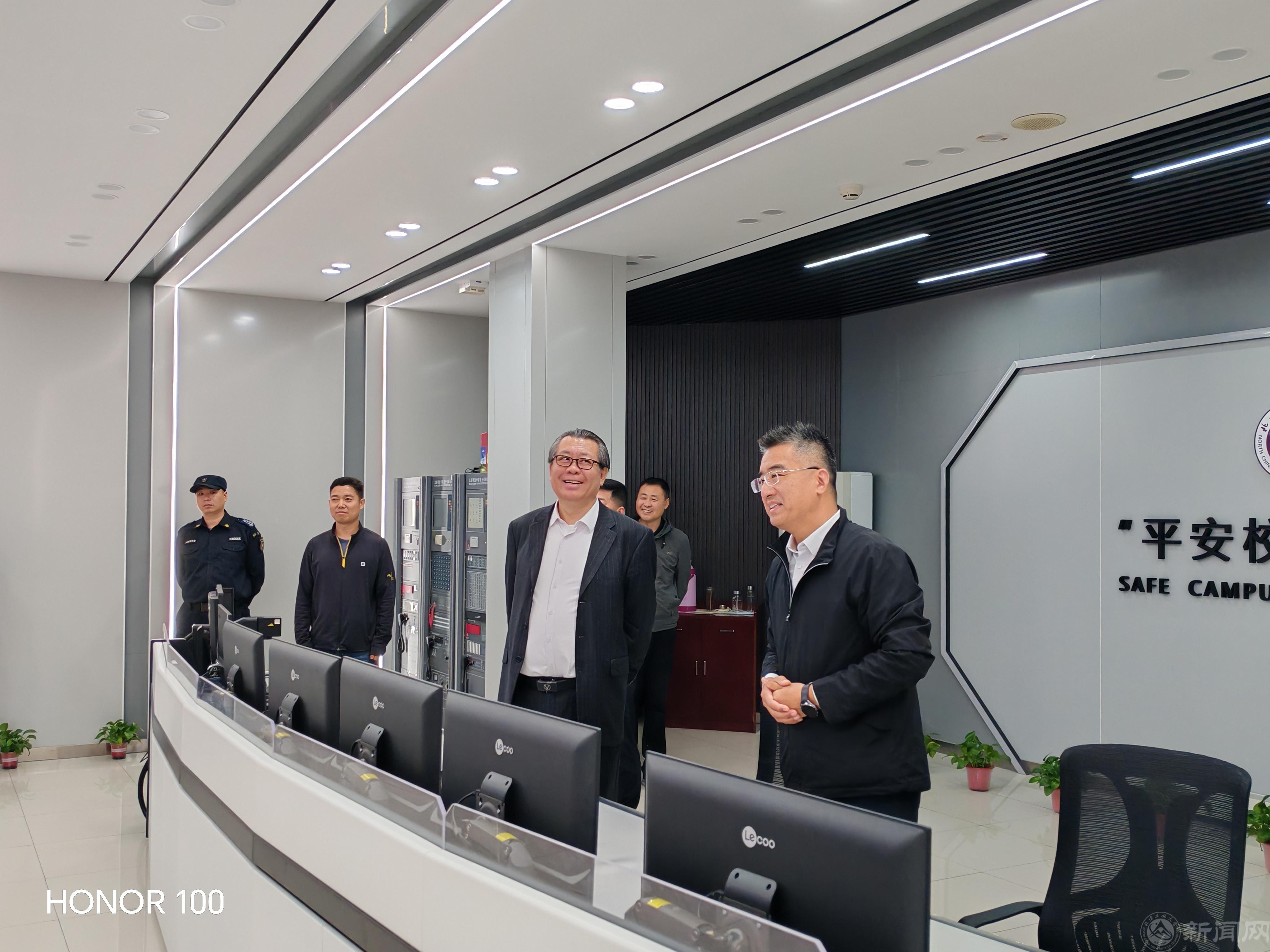 会前,张立峰实地调研了学校“平安校园”管理服务中心,详细了解学校技防平台建设与运行情况。