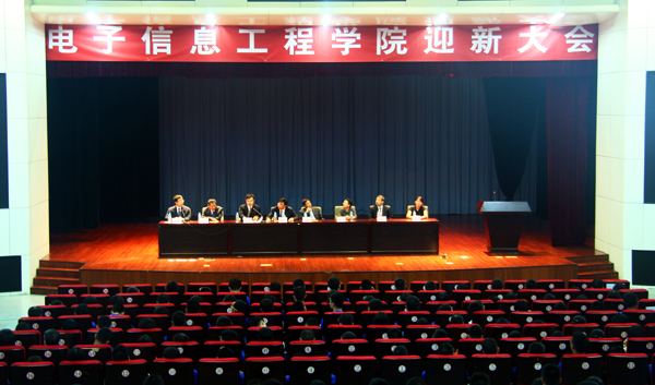 9月10日,电子信息工程学院在图书信息楼报告厅举行2015年迎新大会,副校长罗学科、院党委书记张常年、副院长王月海、曹淑琴、院党委副书记王伟宾及各系主任主席台就坐。学院2015级班导师、辅导员以及2015级新生参加了大会。大会由学院党委副书记王伟宾主持。