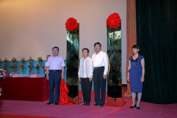 开学典礼以“铭记历史 共筑梦想”为主题,附属学校高年级学生以赠送书籍和寄语贴的方式举行了迎新生仪式。附属学校新生代表在会上做了发言,表达了努力学习、报效祖国的决心。随后,师生代表共同表演了诗朗诵《满江红》、《铭记历史》、快板《社会主义核心价值观引领我成长》等文艺节目,以此纪念中国人民抗战胜利暨世界反法西斯战争胜利70周年。