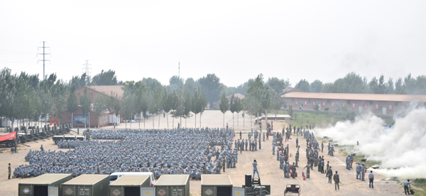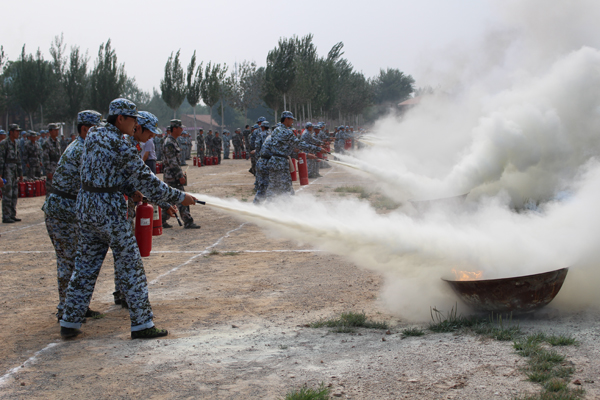 7月10日下午,2014级军训学生灭火逃生演练活动在军训基地举行。此次活动由2014级军训团和世界杯保卫处共同组织,军训基地给予了大力支持和配合。在演练现场,世界杯保卫处梁令富老师为大家讲解了灭火器的种类及使用方法。随后,全体参训学生每三人一组进行了灭火实战演习。随着一声声“灭火!”指令的发出,同学们迅速地提起灭火器,手握喷管向火源喷扫,迅速准确地完成灭火任务。