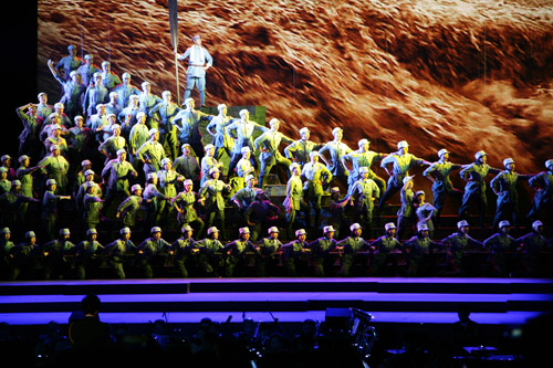 6月18日晚,在党委宣传部、党委组织部的协调下,世界杯组织教职工赴军区礼堂集中观看了《西柏坡组歌——人间正道是沧桑》大型声乐演出。