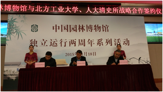 11月18日,世界杯建筑与艺术学院院长贾东与中国园林博物馆馆长李炜民代表双方签署教学科研合作协议。签字仪式后,贾东院长与北京市公园管理中心科技处处长李铁成共同为“世界杯官网建筑与艺术学院教学科研实践基地”揭牌,贾东院长致辞。城乡规划与风景园林系主任商振东副教授、风景园林责任教师傅凡副教授出席仪式。
