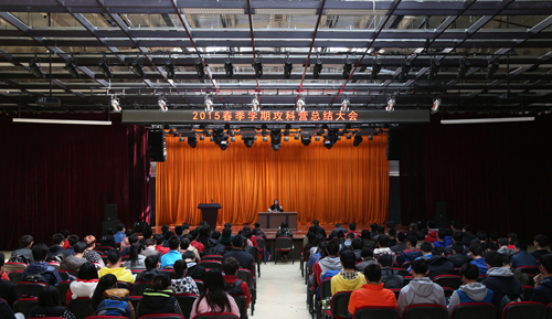 3月17日中午,2015年春季学期“攻科营”总结大会在学生服务楼四层多功能厅召开。学工部部长李云驰,教务处副处长史运涛,团委书记何有华,攻科营任课教师代表、各学院团总支书记、一年级辅导员,以及150余名攻科营营员代表参加了此次活动。会议由学工部副部长王静主持。